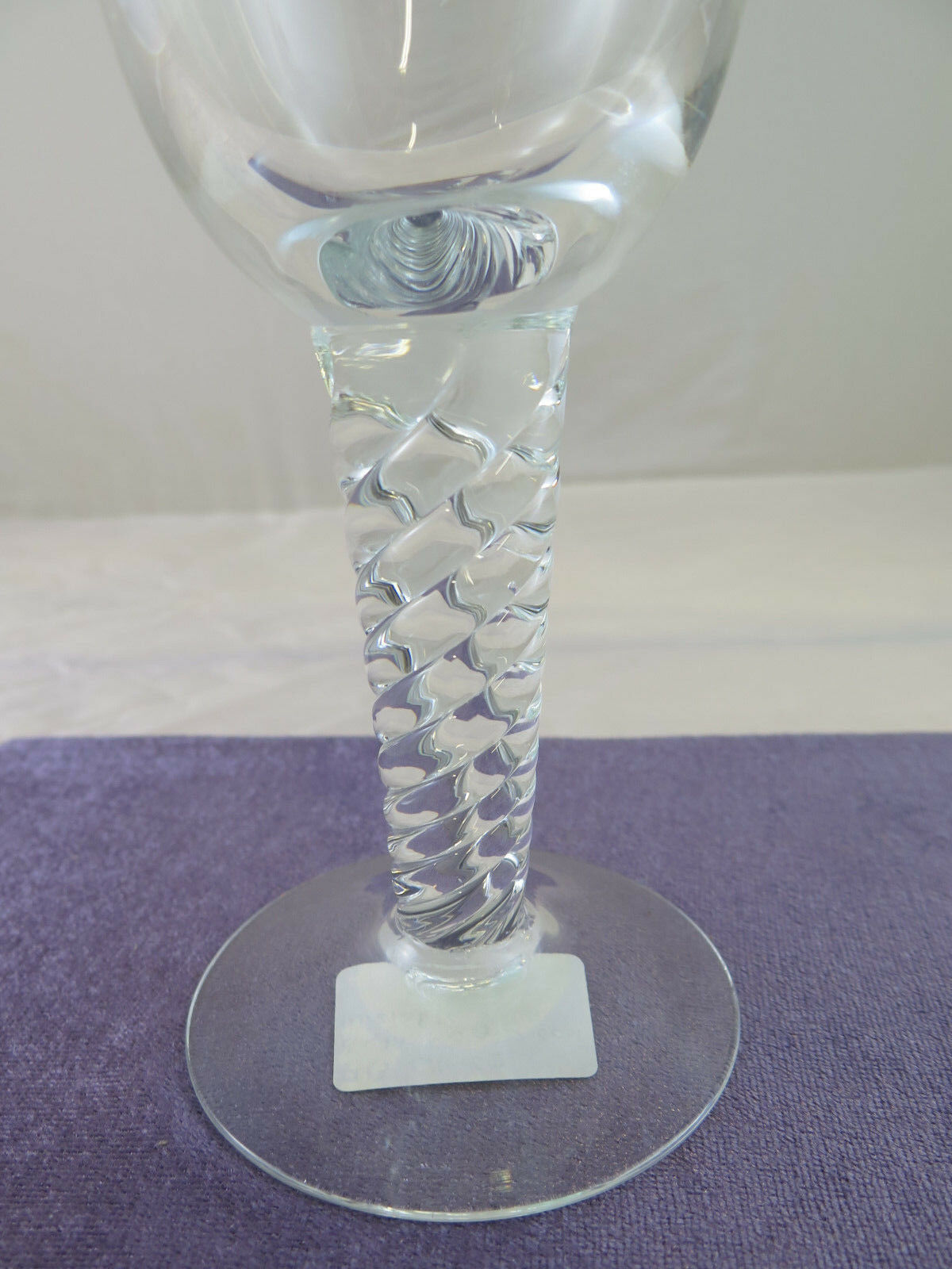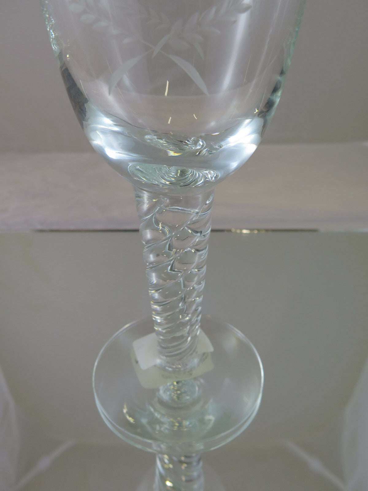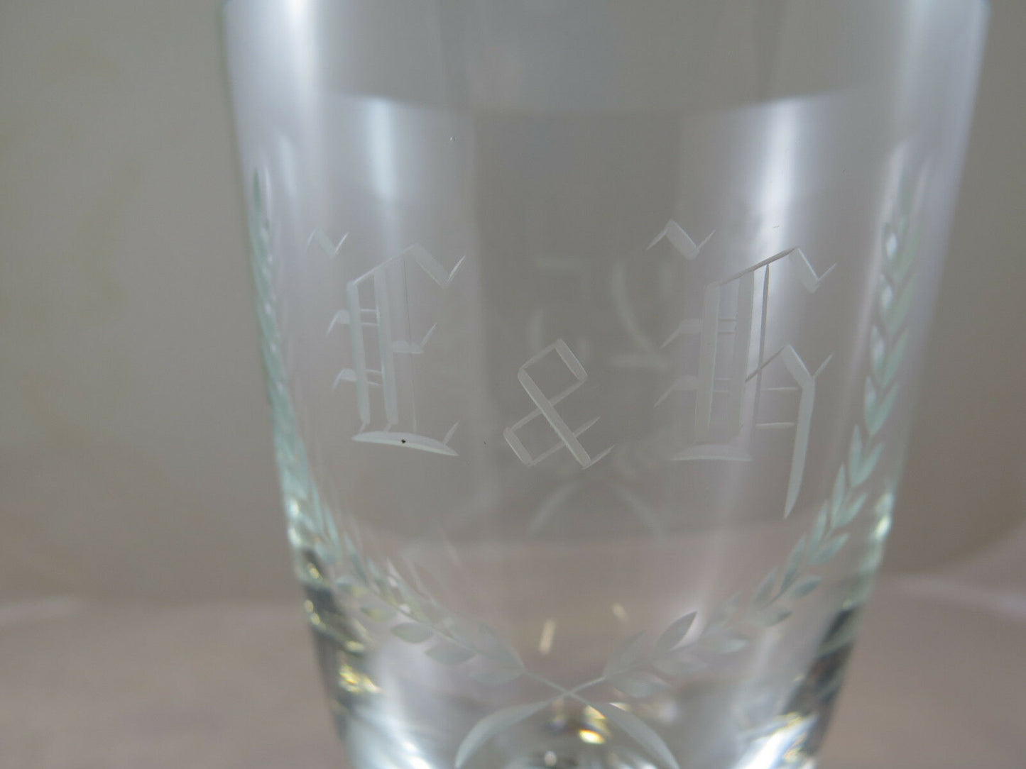 Antico calice in cristallo di Boemia con gambo tortile e decorato in le iniziali E&H probabilmente per un venticinquesimo anniversario.