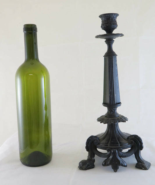 ANTICO CANDELIERE IN METALLO DORATO LAVORATO A SBALZO EPOCA '800 CANDELABRO G10