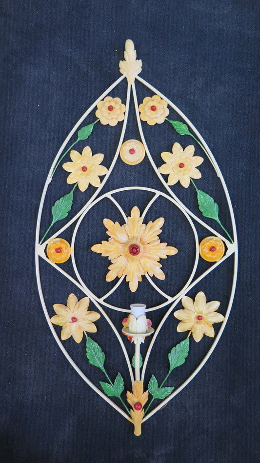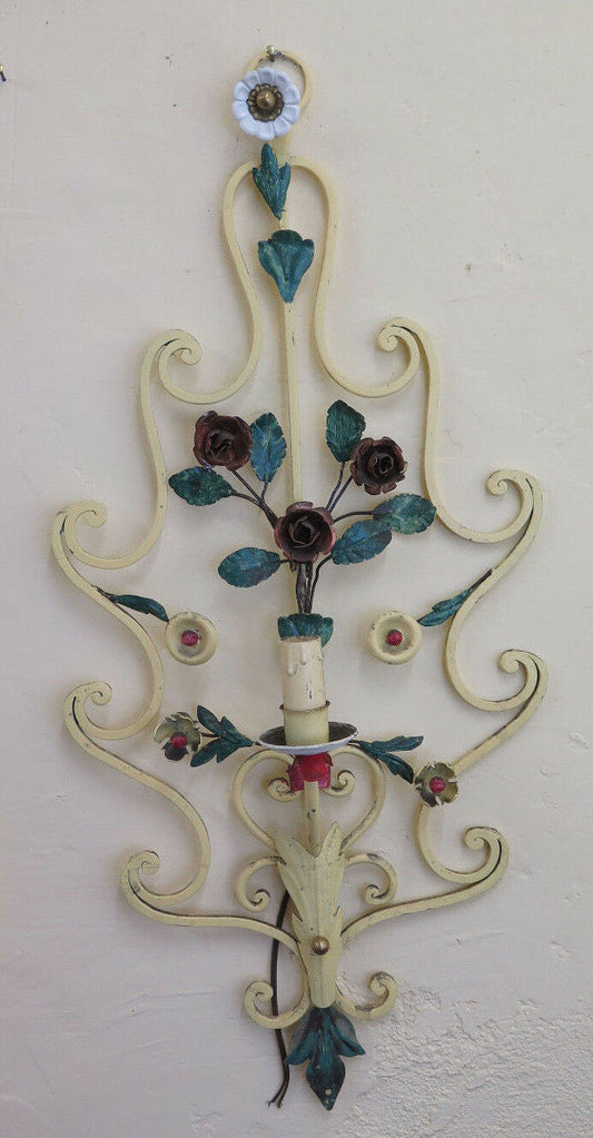 2 APPLIQUE DA PARETE IN FERRO BATTUTO VINTAGE A FIORI LAMPADA DA PARETE CH14