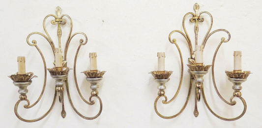 APPLIQUE COPPIA IN FERRO BATTUTO DORATE VINTAGE ARTIGINALI FATTE MANO ITALY CH18