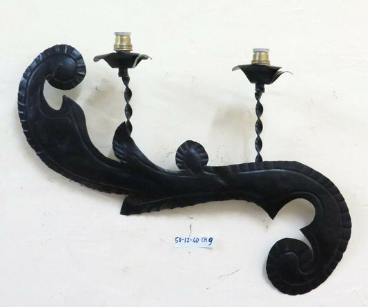 APPLIQUE IN FERRO BATTUTO VINTAGE META' NOVECENTO A DUE FIAMME LUME DA MURO CH11
