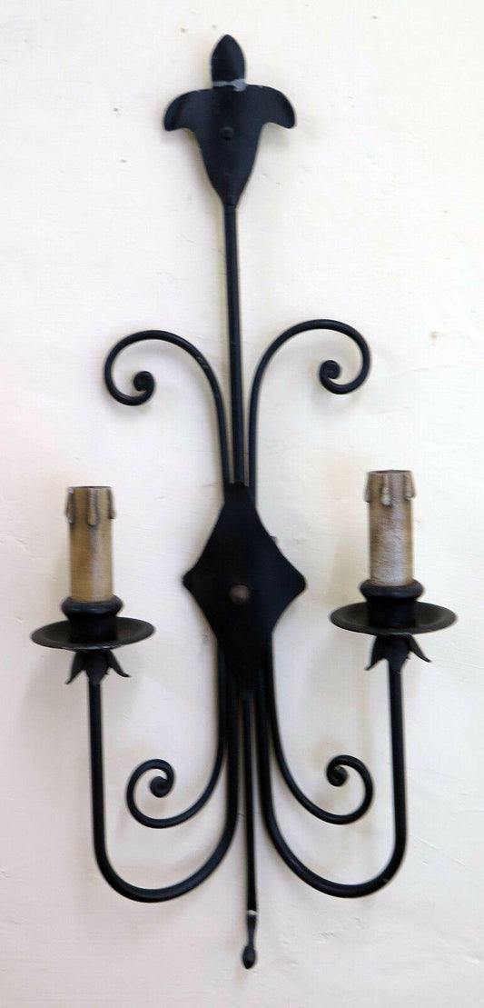 2 APPLIQUE DA PARETE IN FERRO BATTUTO VINTAGE COPPIA DI LAMPADE DA PARETE CH14 2
