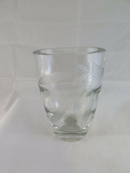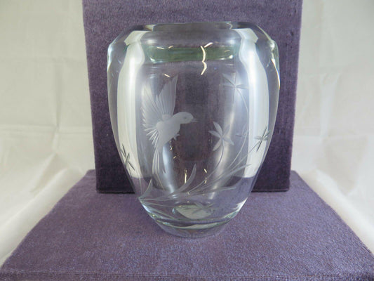 VASO PER FIORI IN VETRO DECORATO CON COLIBRì VINTAGE ART DECO GLASS VASE R78
