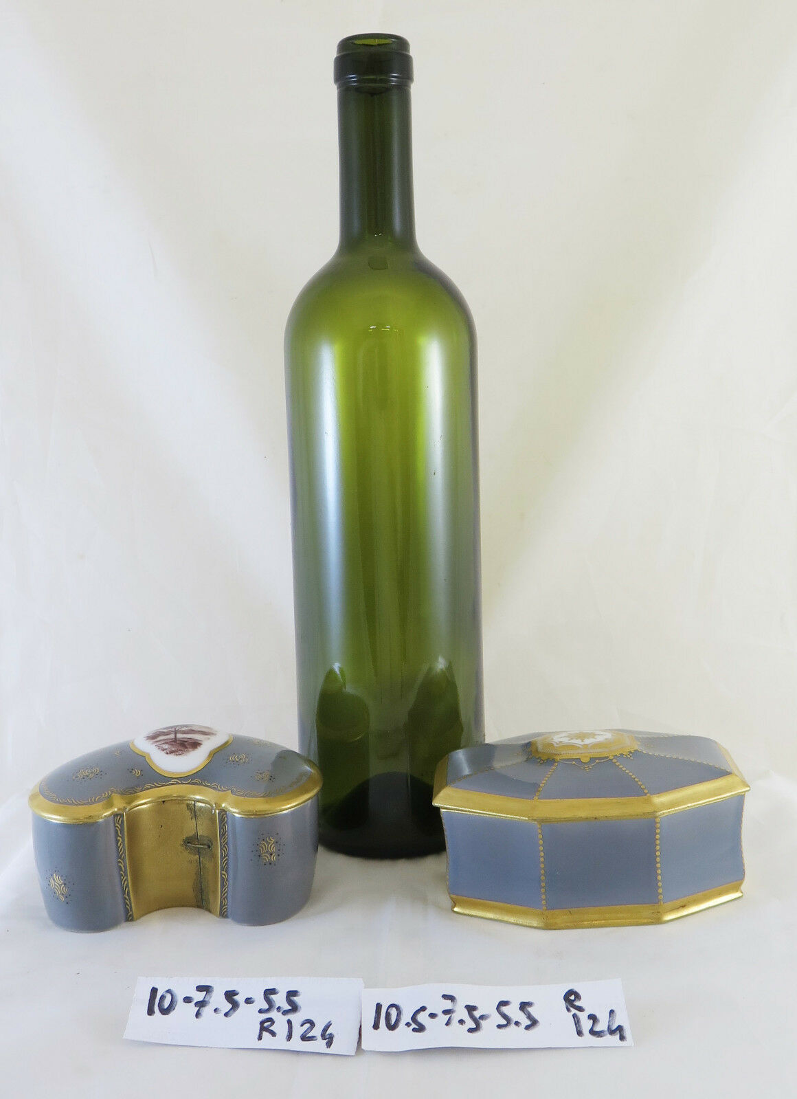Misure: 10 x 7,5 x h5,5 cm (scatola a fagiolo); 10,5 x 7,5 x h5,5 cm (scatola ottagonale)