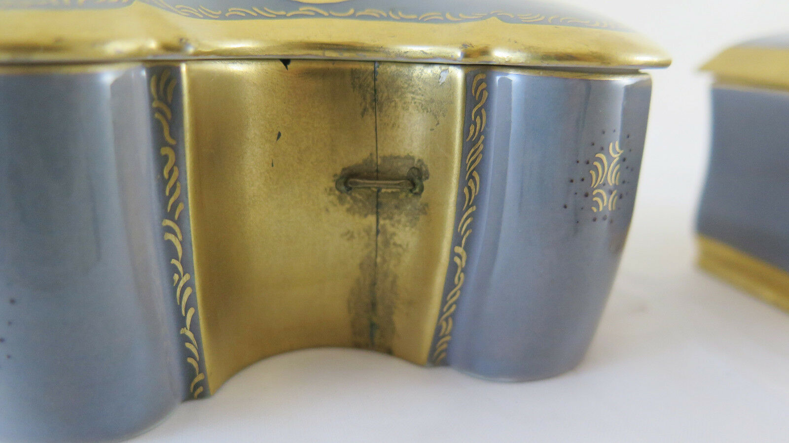 Condizioni: la scatola a forma di fagiolo presenta un vecchio restauro, l'altra in ottime condizioni