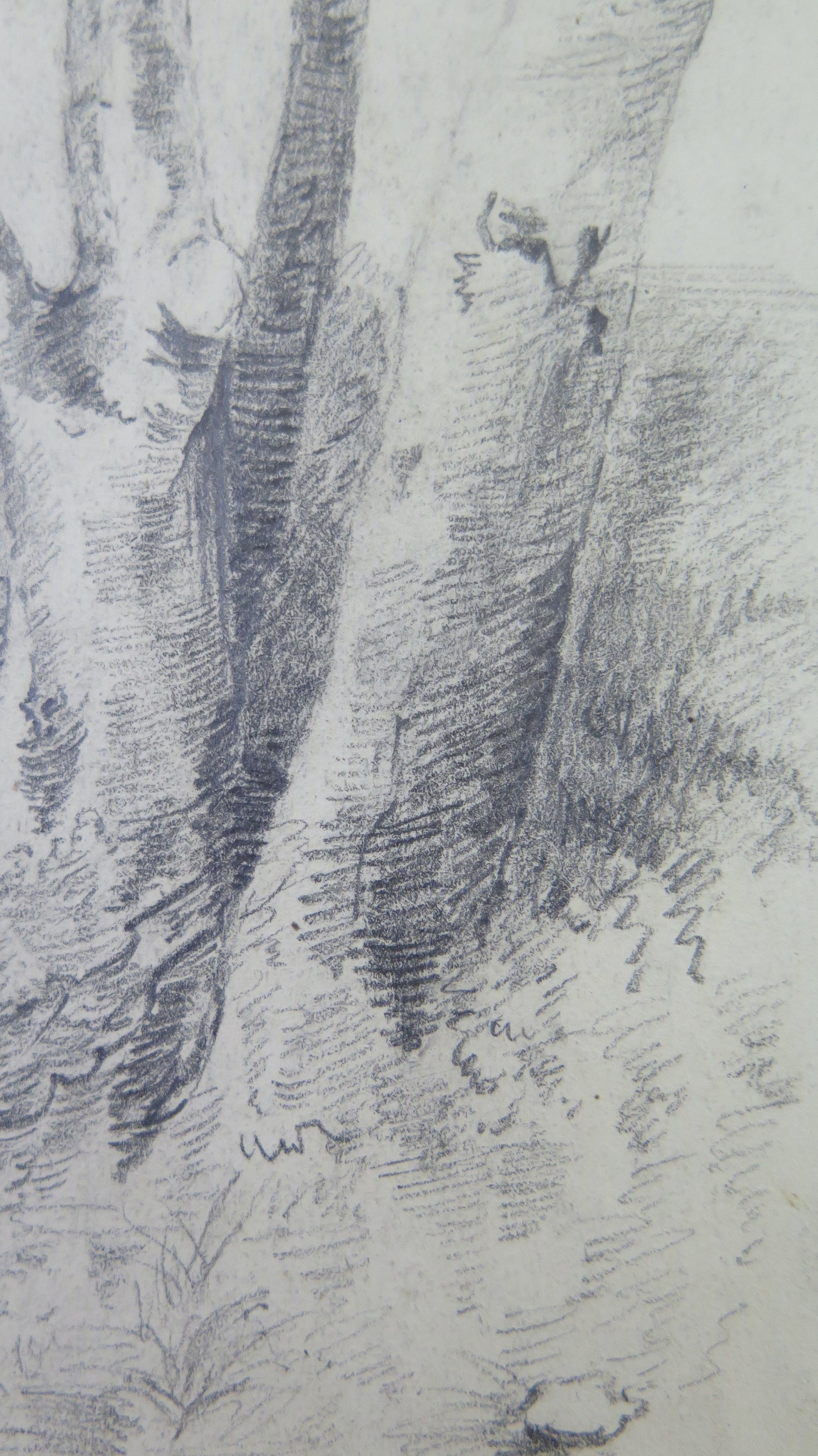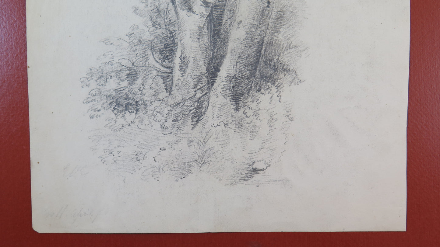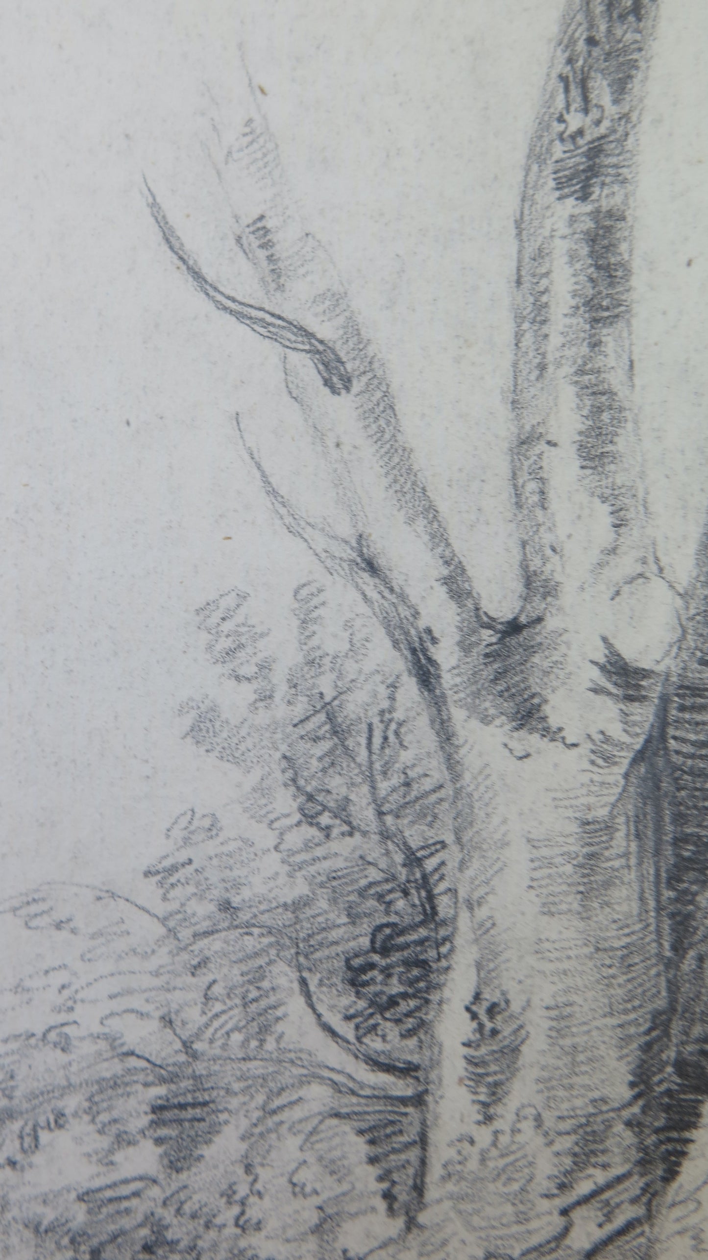 QUADRO ANTICO PAESAGGIO DI CAMPAGNA MATITA SU CARTA ALBERI BOSCO FRANCIA BM53.5b