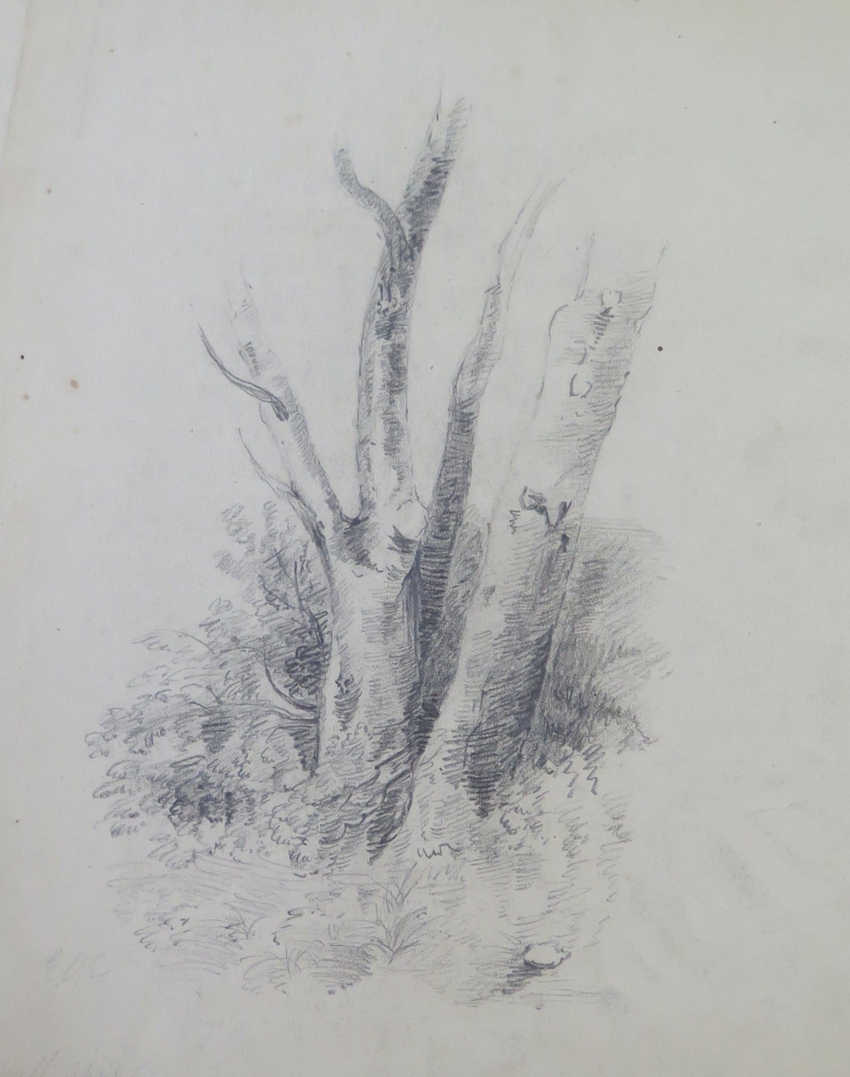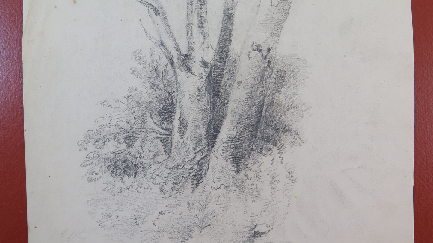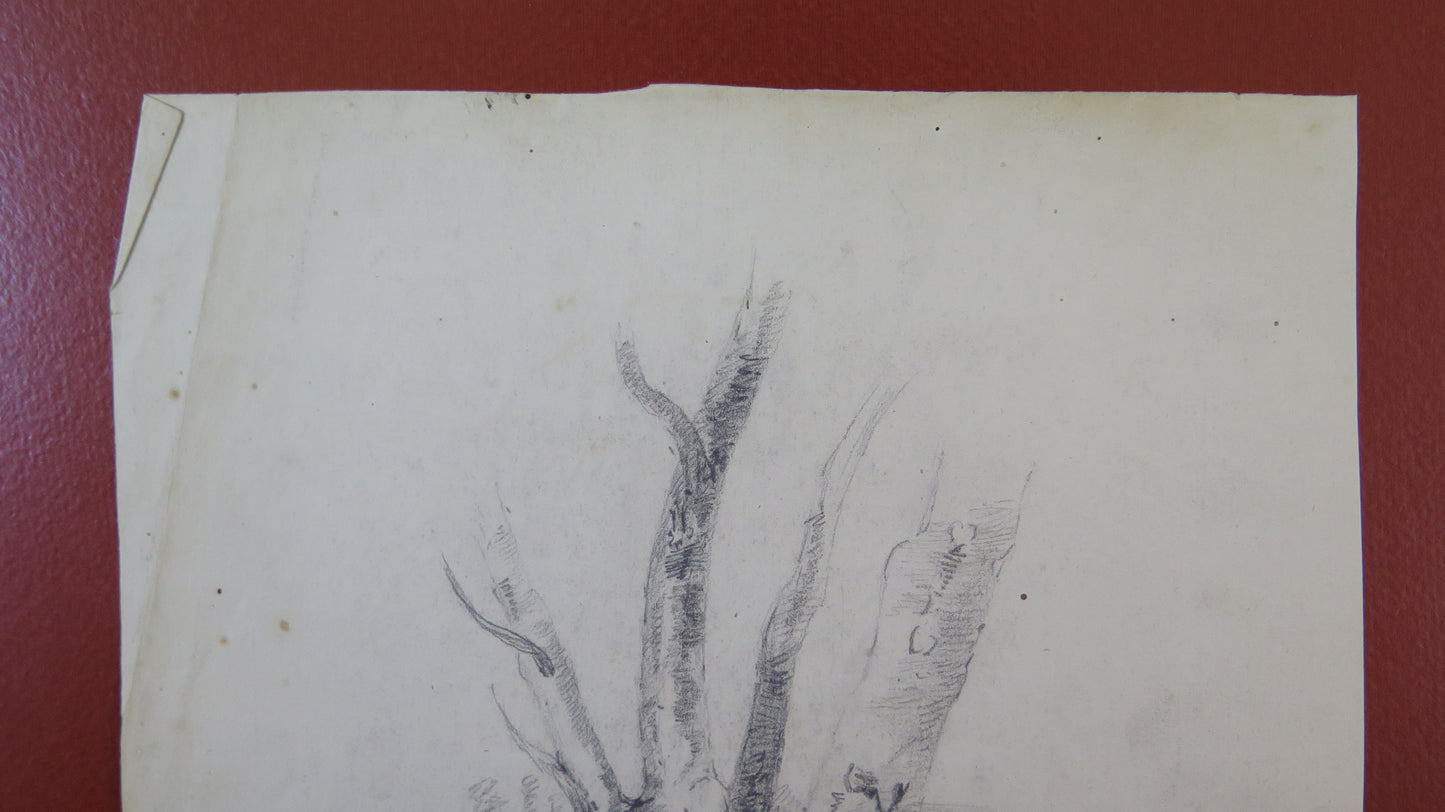 QUADRO ANTICO PAESAGGIO DI CAMPAGNA MATITA SU CARTA ALBERI BOSCO FRANCIA BM53.5b