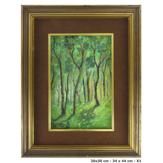 Quadro ad olio firmato Poggio opera del pittore piemontese Giacomo Poggio anni '60 paesaggio boschivo verde intenso X1