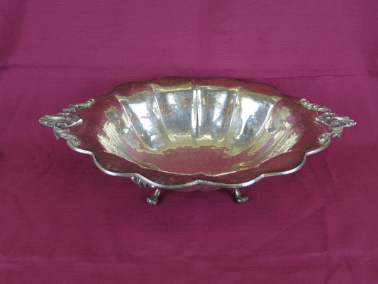 Grande piatto centrotavola in metallo argentato vintage fruttiera da portata bt2