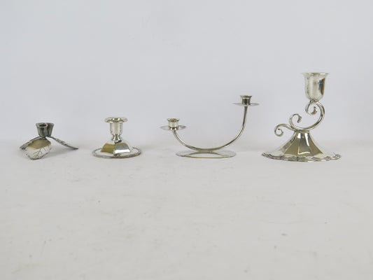4 CANDELIERI ANTICHI METALLO ARGENTATO BUGIE PORTACANDELA R146