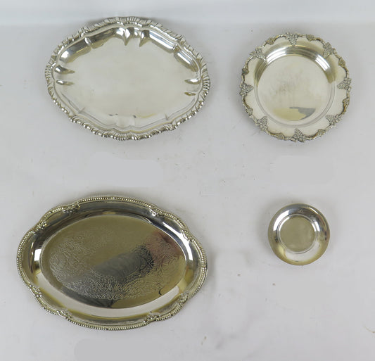 4 PIATTI ANTICHI IN METALLO ARGENTATO DI VARIE MISURE PORTATA CIOTOLA R146