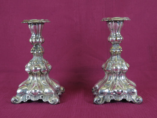 CANDELIERI ANTICHI COPPIA STILE BAROCCO METALLO ARGENTATO DANIMARCA '900 R142