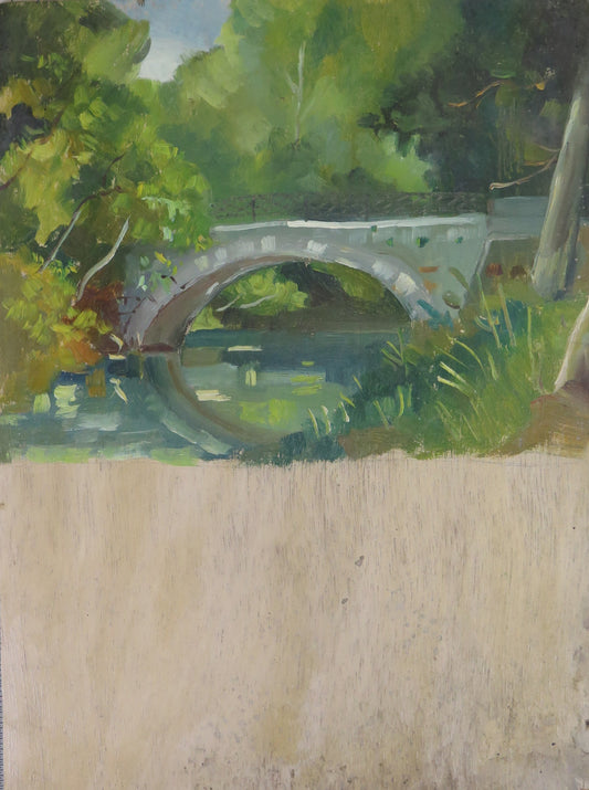 23x34 cm QUADRO NON FINITO DIPINTO OLIO SU TAVOLA SPAGNA XX SECOLO VEDUTA MD12