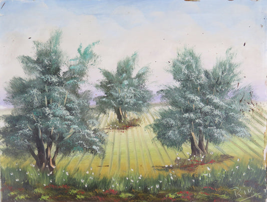VECCHIO QUADRO AD OLIO SU TELA FIRMATO RIV RIBERA PAESAGGIO SPAGNA DIPINTO MD13