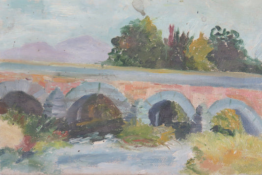 VECCHIO DIPINTO IN STILE IMPRESSIONISTA PICCOLE DIMENSIONI PAESAGGIO SPAGNA MD12