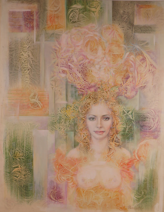 QUADRO ASTRATTO FLOREALE FIRMATO PANCALDI DIPINTO TECNICA DEL GHIACCIO GELO P10