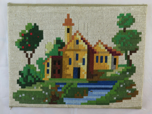VECCHIO RICAMO IMPARATICCIO MEZZOPUNTO Canapa da imparaticcio CROSS STITCH X3