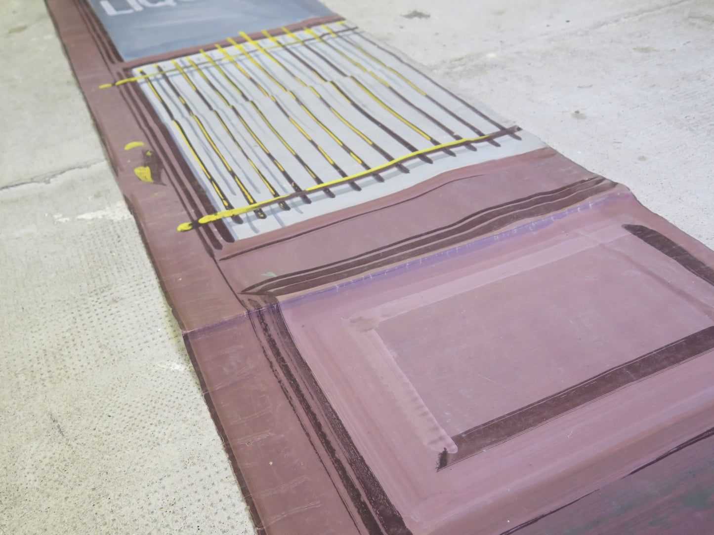 57x226 cm GRANDE DIPINTO ANTICO SCENOGRAFIA TEATRALE TEATRO PORTA BAR CL1.66