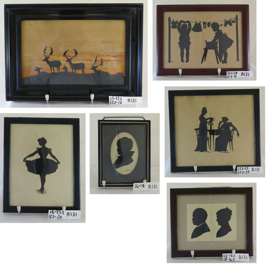 SEI DIPINTI SILHOUETTE QUADRI ANTICHI ARTE NERA FIGURE SAGOME ORIGINALI R131