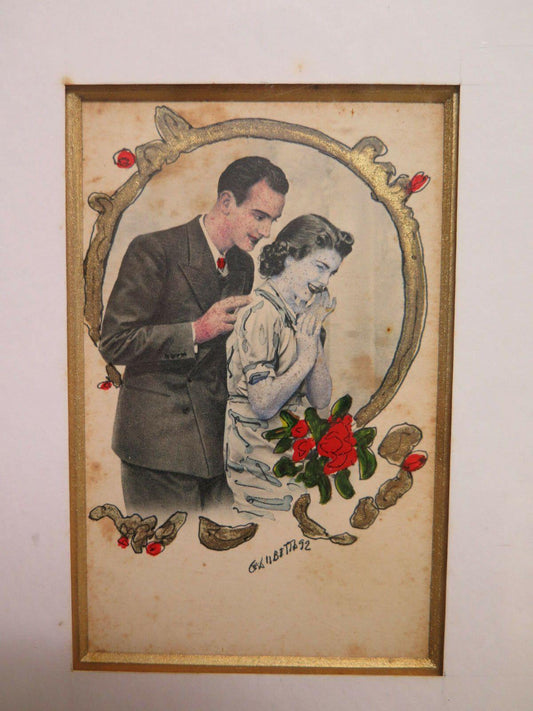 STAMPA ACQUERELLATA VINTAGE FIRMATA GAMBETTA AMORE MIO CON CERTIFICATO G24