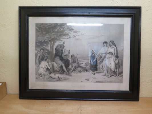 STAMPA ANTICA DA COOMANS ALLAIS SCENA NEOCLASSICA CORNICE LEGNO GRANDE MISURA RB