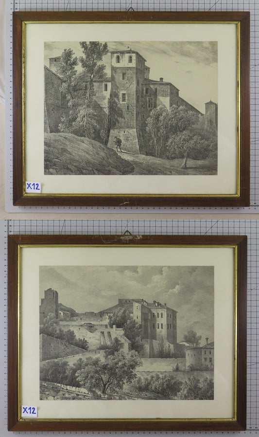 DUE STAMPE ANTICHE CASTELLO DI SUSA CASTELLO DI FERRERE CON CORNICE LEGNO X12