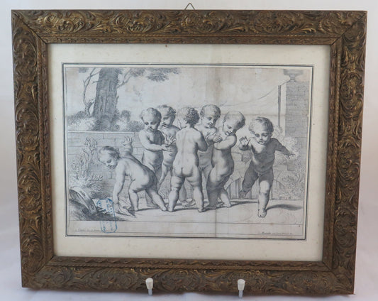 STAMPA ANTICA INCISIONE ACQUAFORTE PIERRE-JEAN MARIETTE PUTTI BAMBINI BM44