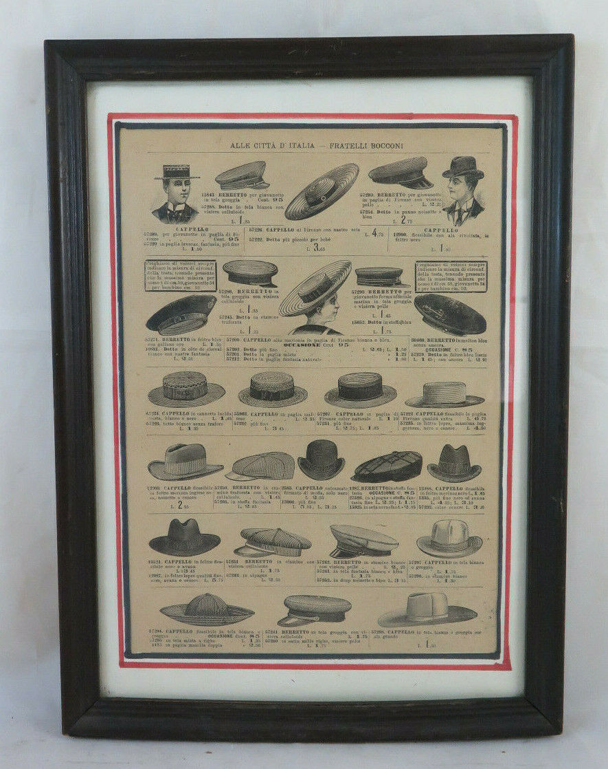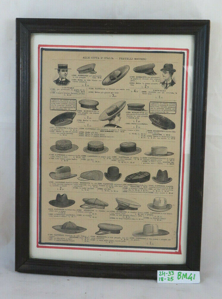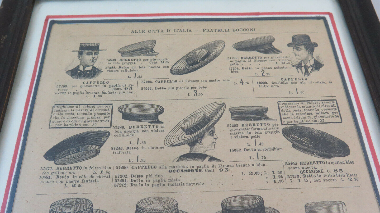 Alle città d’Italia FRATELLI BOCCONI STAMPA ANTICA CATALOGO MODA CAPPELLI BM41