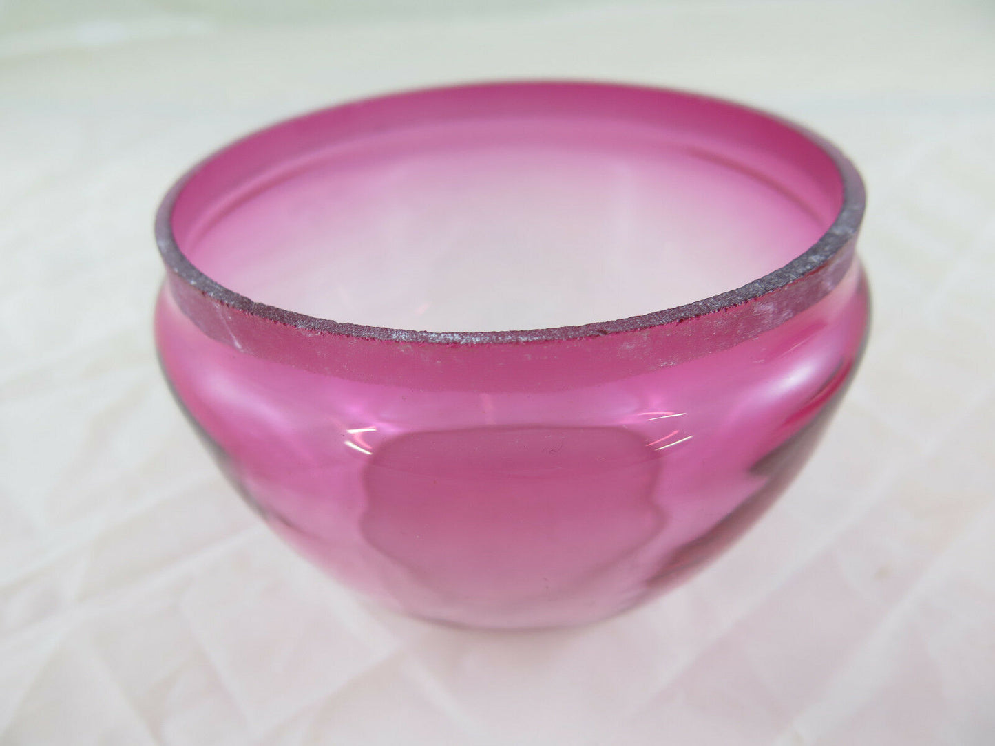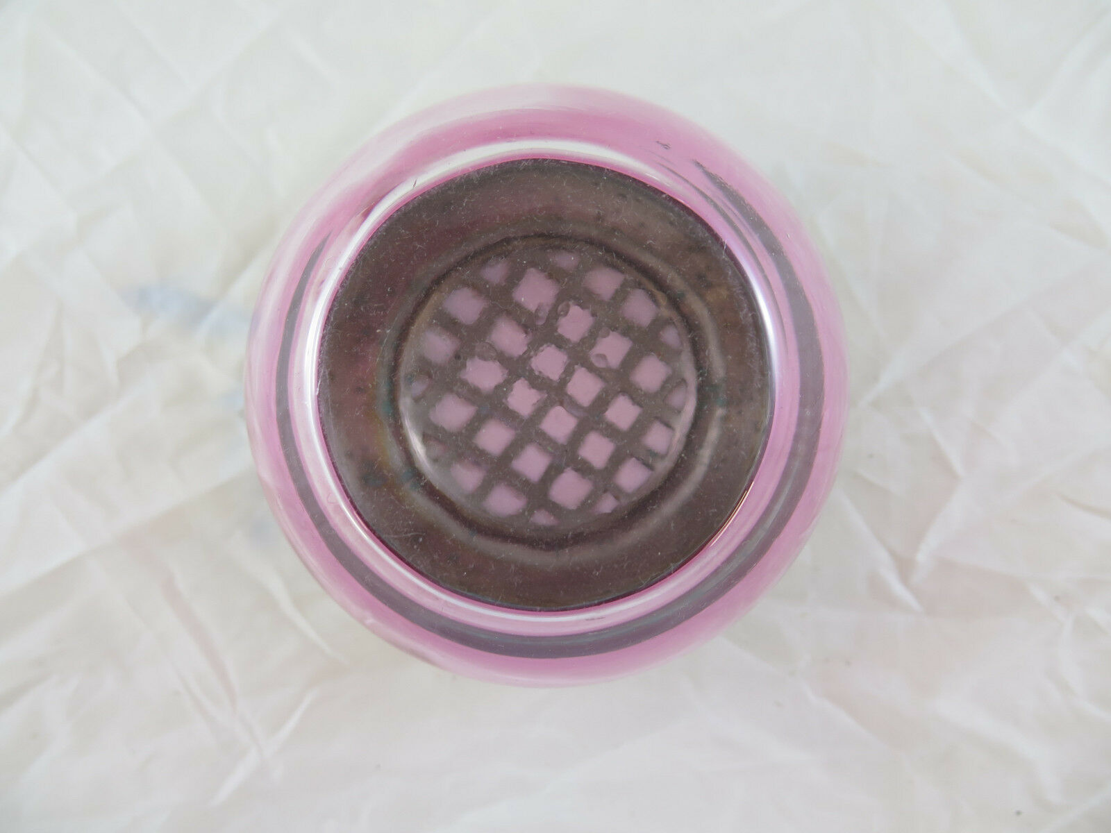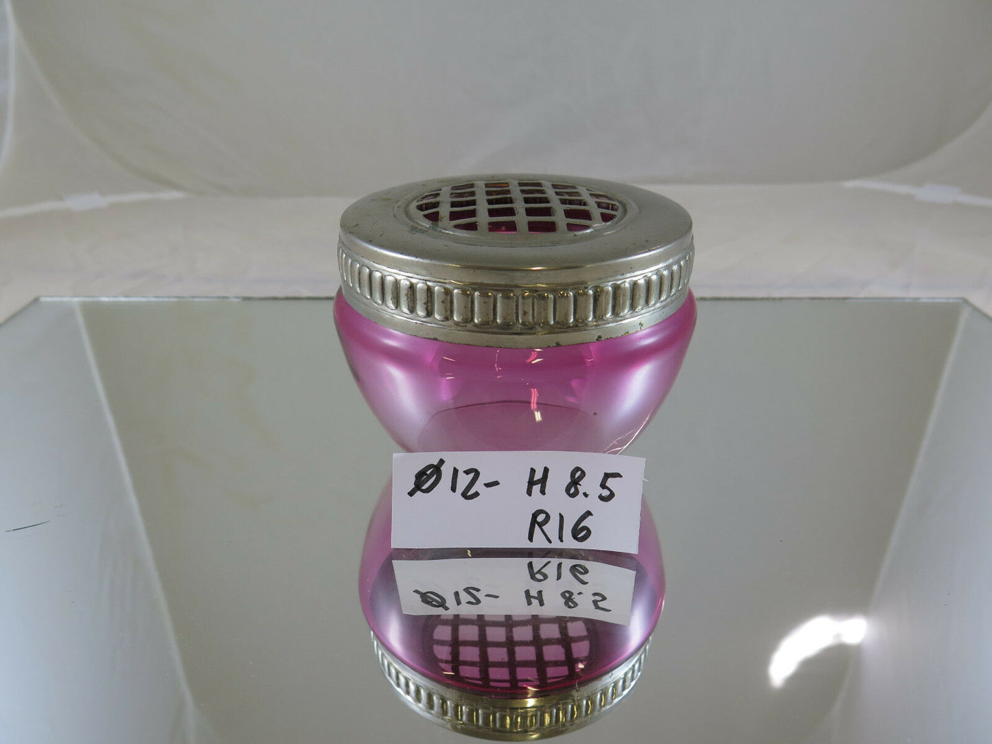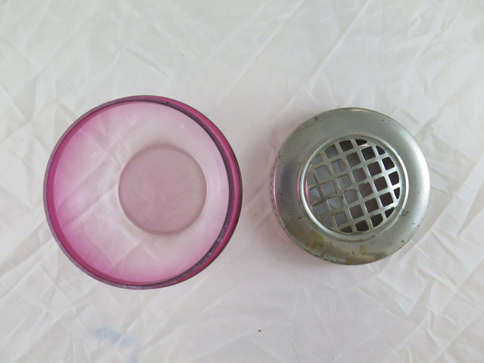 Raffinata coppa di epoca Liberty per potpourry o incenso in fine vetro rosa con coperchio in metallo.
