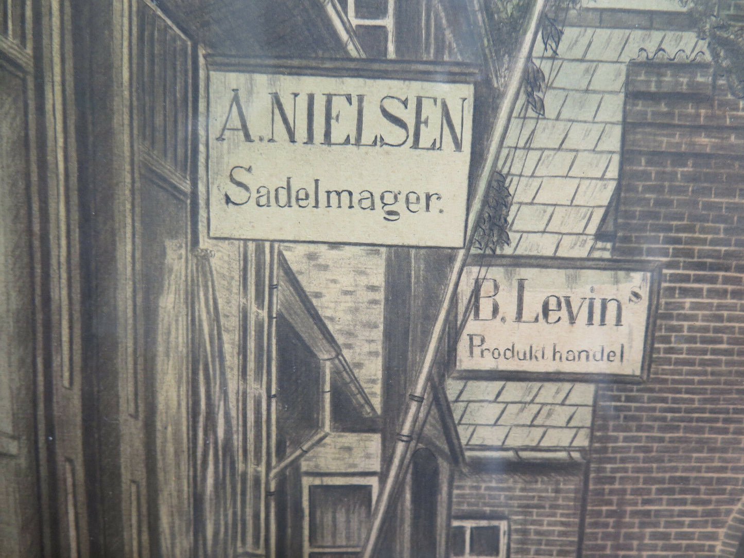 Finissima incisione del pittore danese Carl Wedderkopp che raffigura una veduta cittadina.