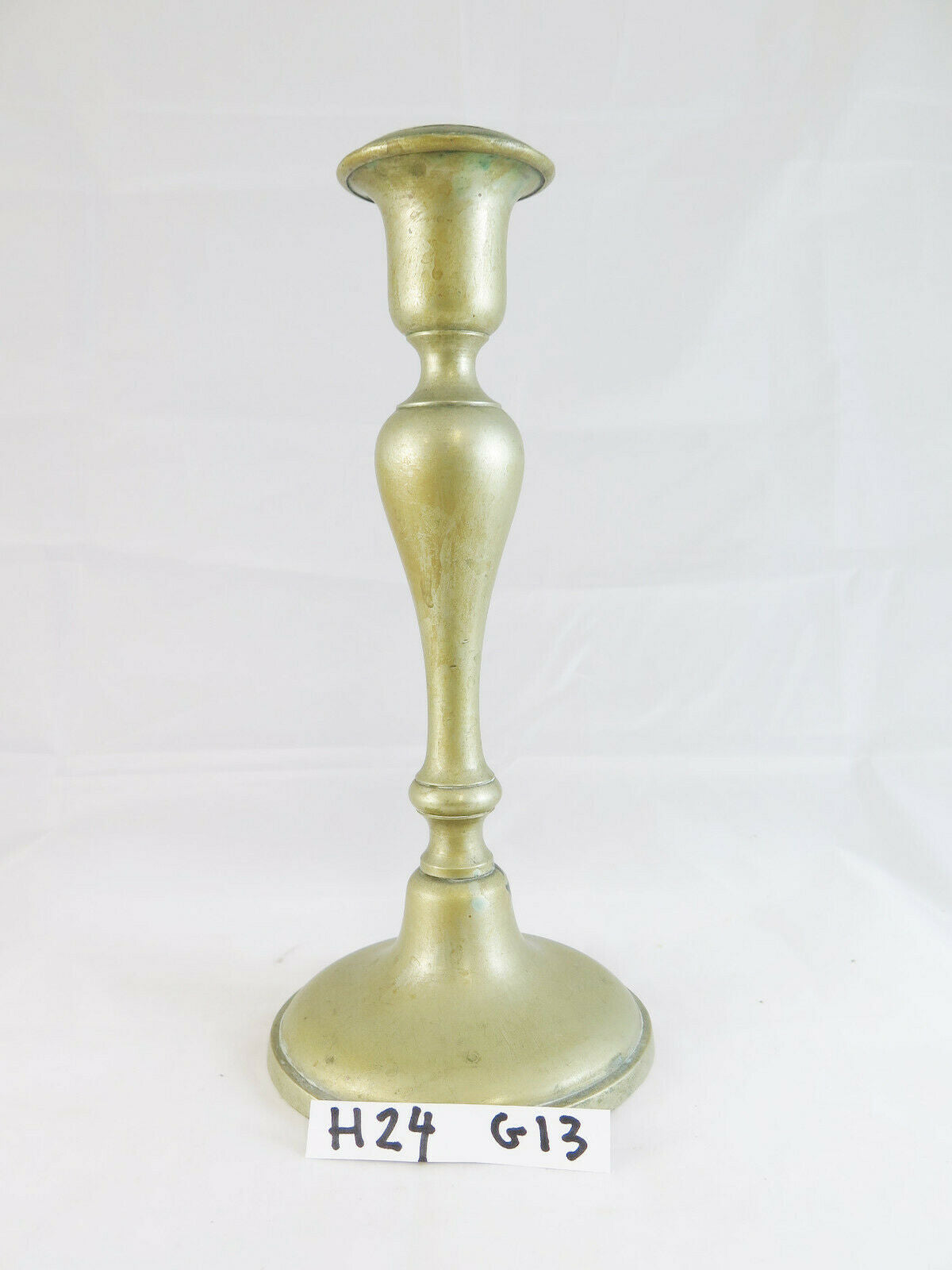 ANTICO CANDELIERE EPOCA OTTOCENTO IN OTTONE DORATO E TORNITO TORCIERA LUME G13