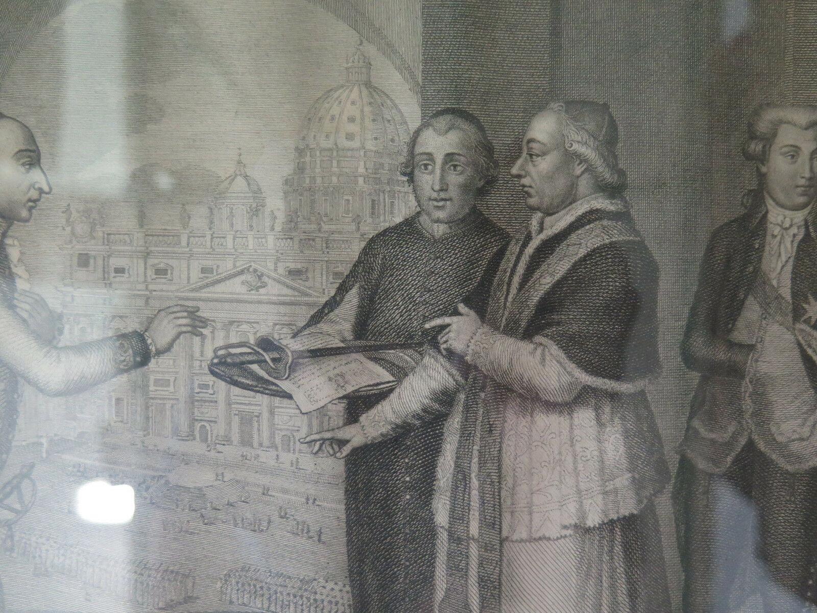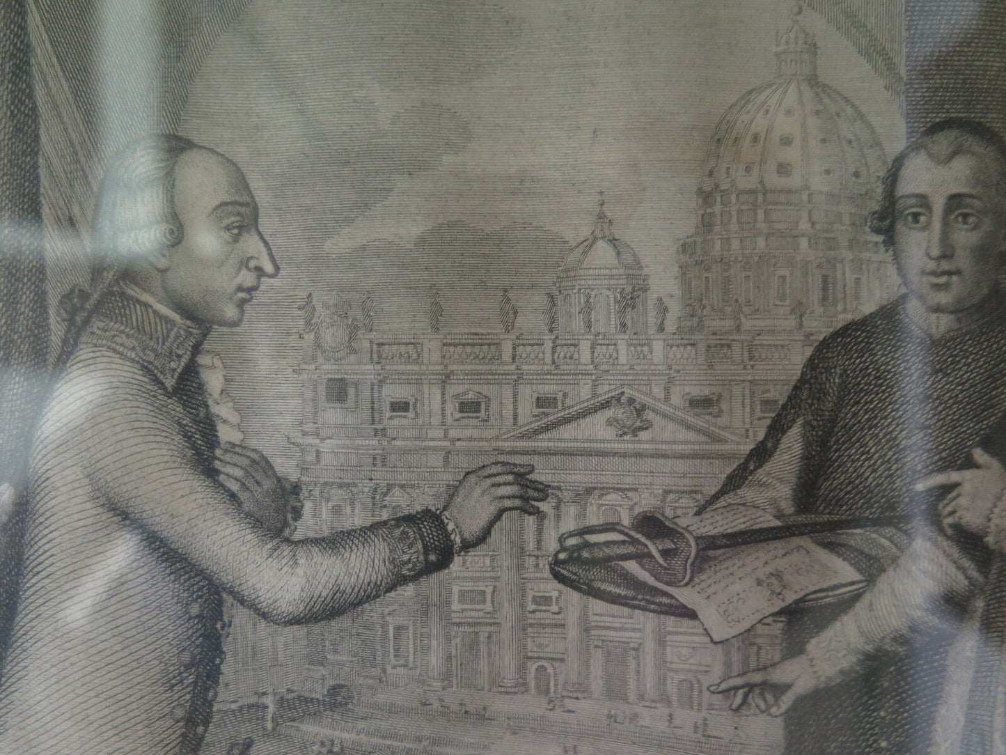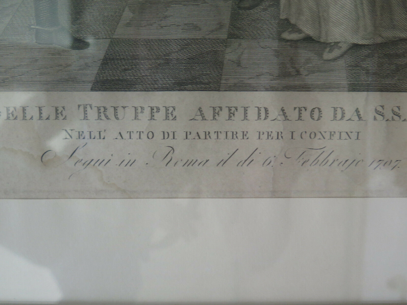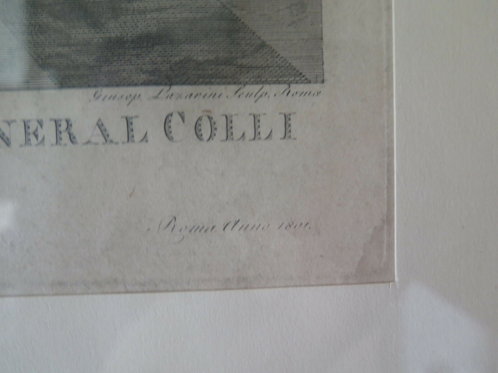 Fine incisione dal titolo: "Comando Supremo delle Truppe Affidato da S.S. Pio Vi al General Colli" pubblicata nel 1801 e presente negli archivi dei più importanti musei del mondo tra cui il British Museum