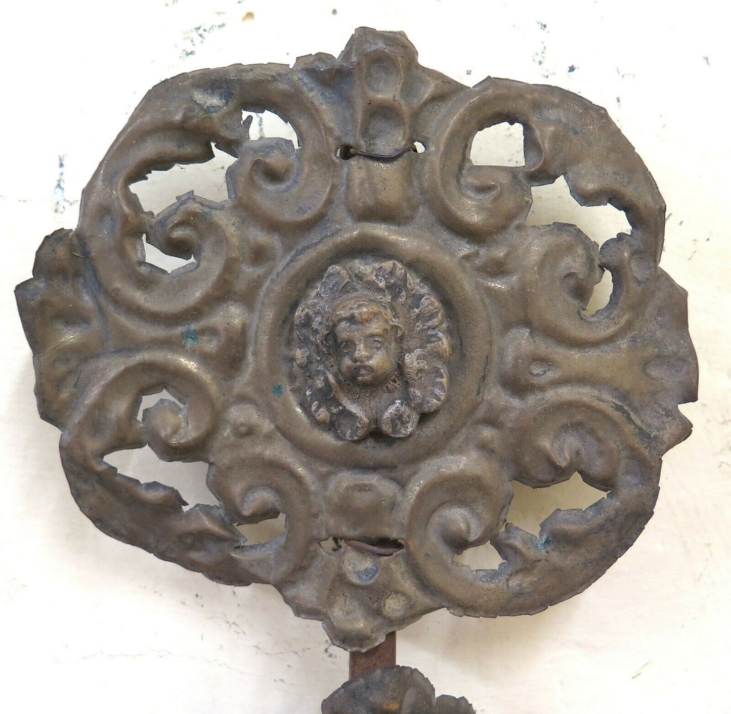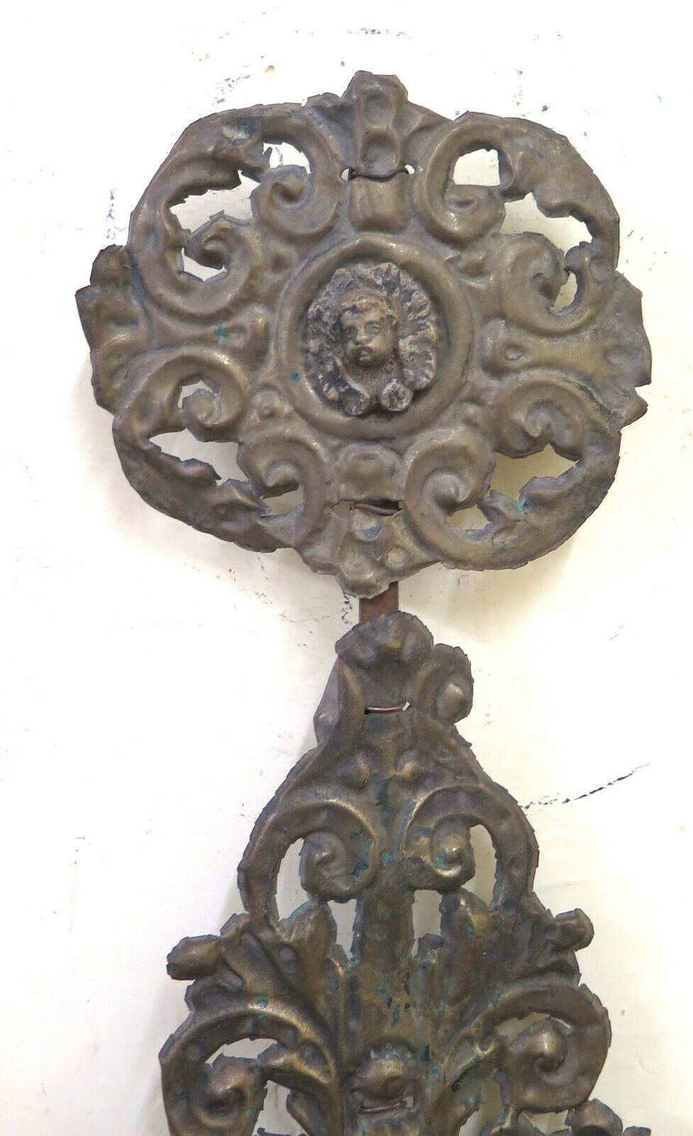Antica coppia di fregi in metallo lavorato a sbalzo con un ricca decorazione di gusto barocco.