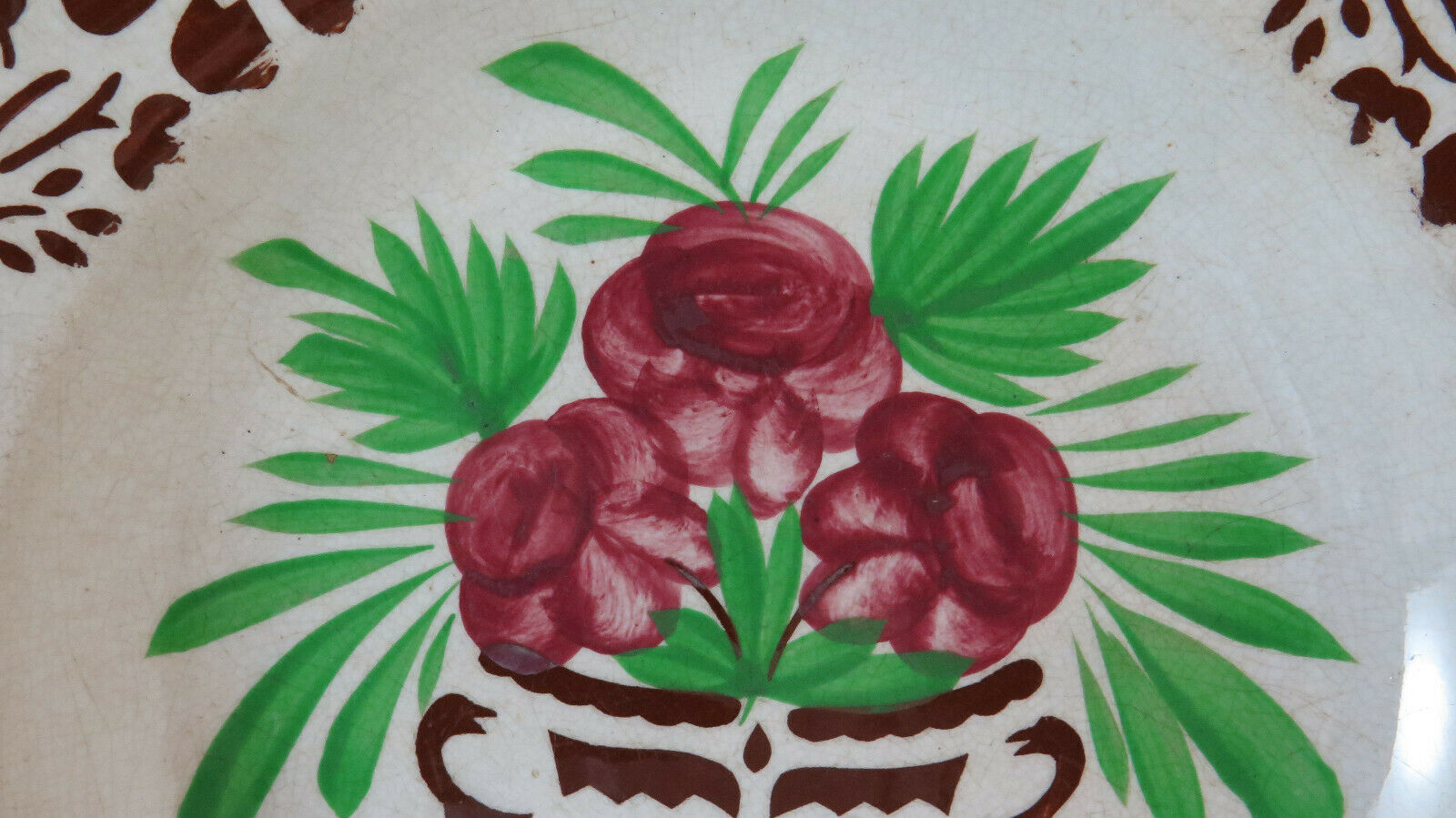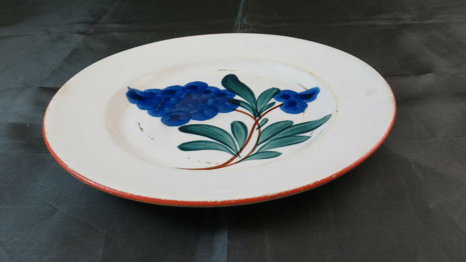 Due vecchi piatti in ceramica opaca di Sarreguemines e di Gien con decori vegetali marchiati sul fondo.