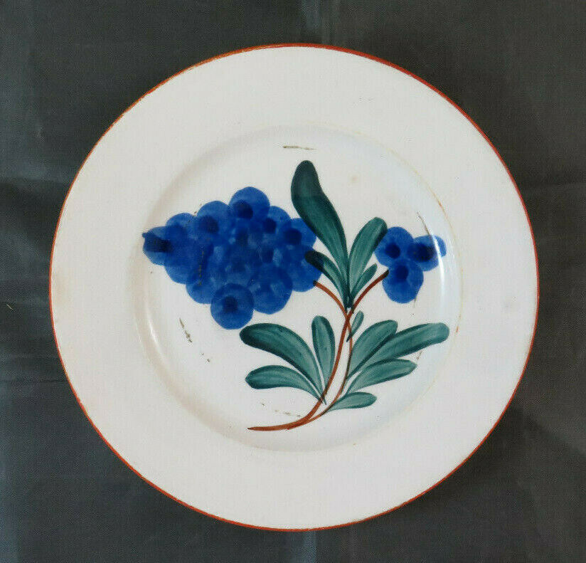 Two antique opaque de Sarreguemines and opaque de Gien ceramic plates with vegetal decoration.