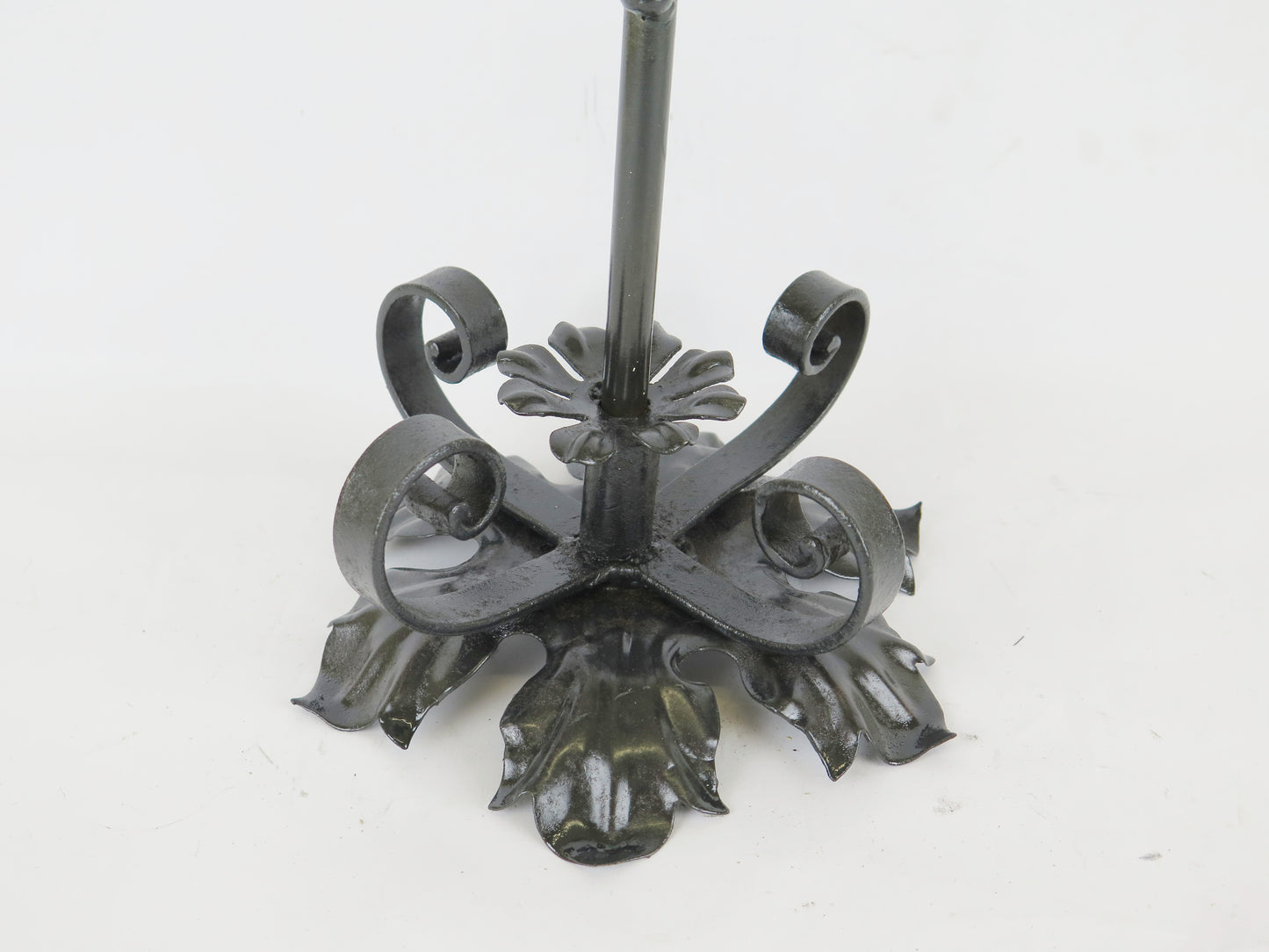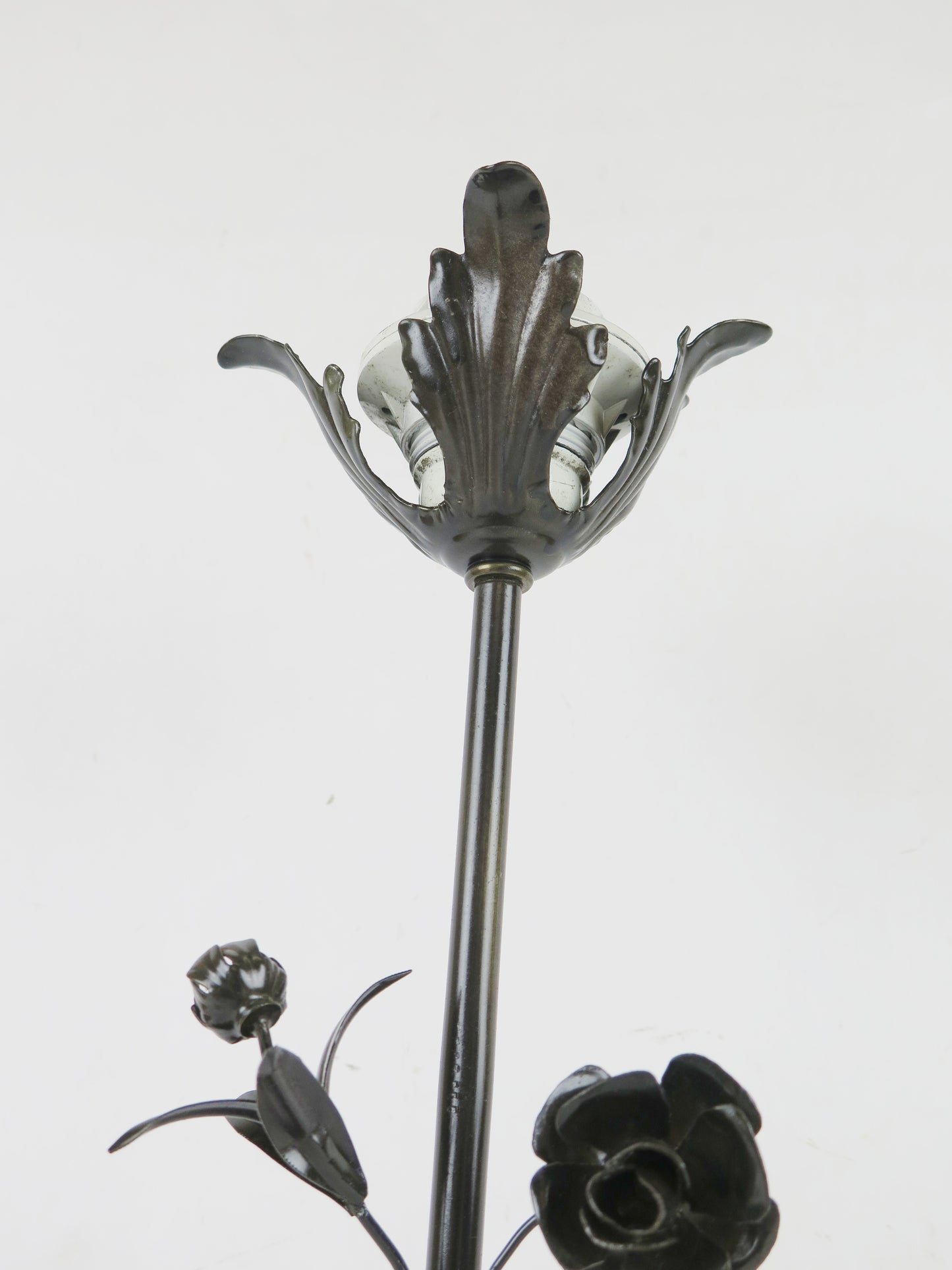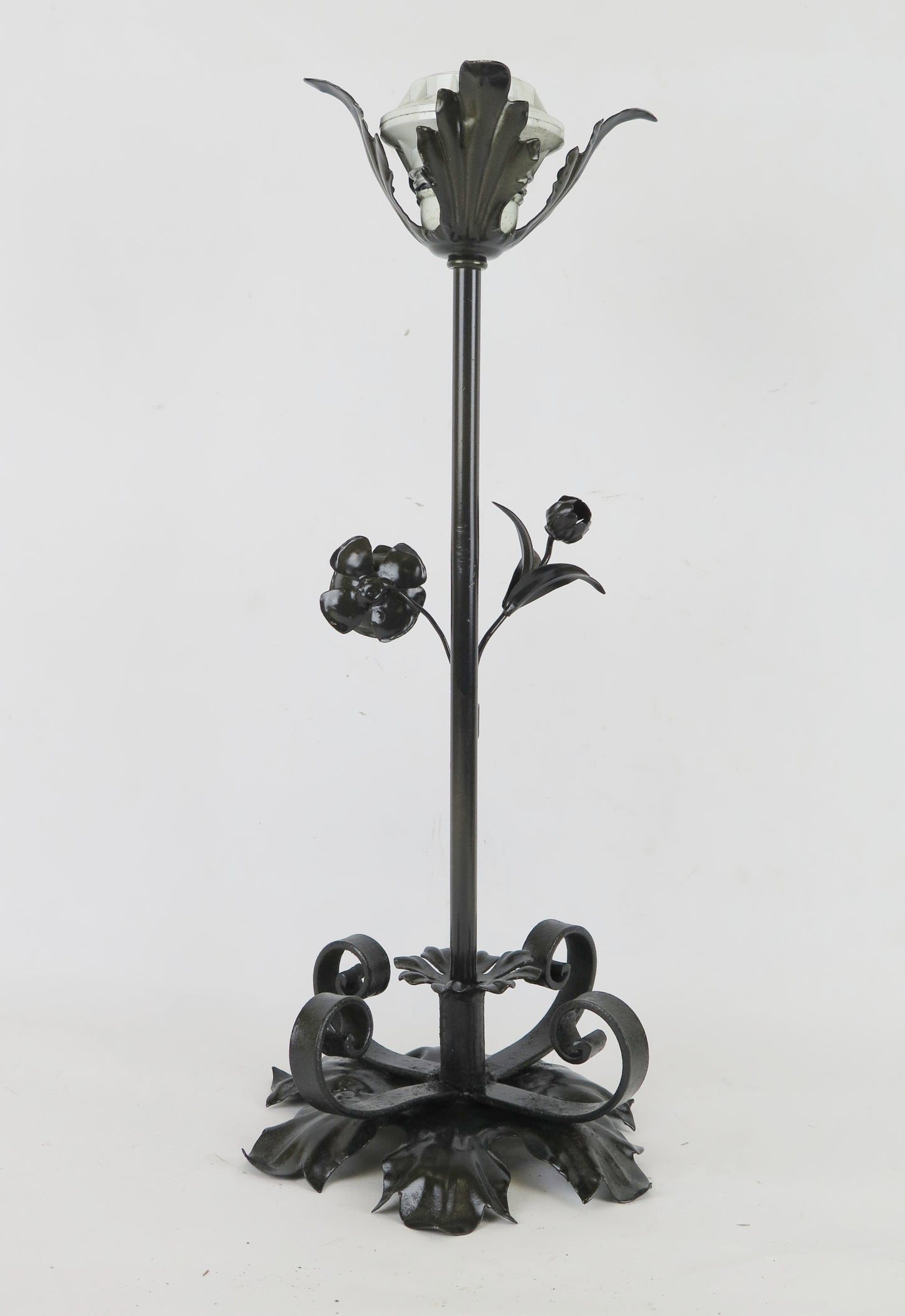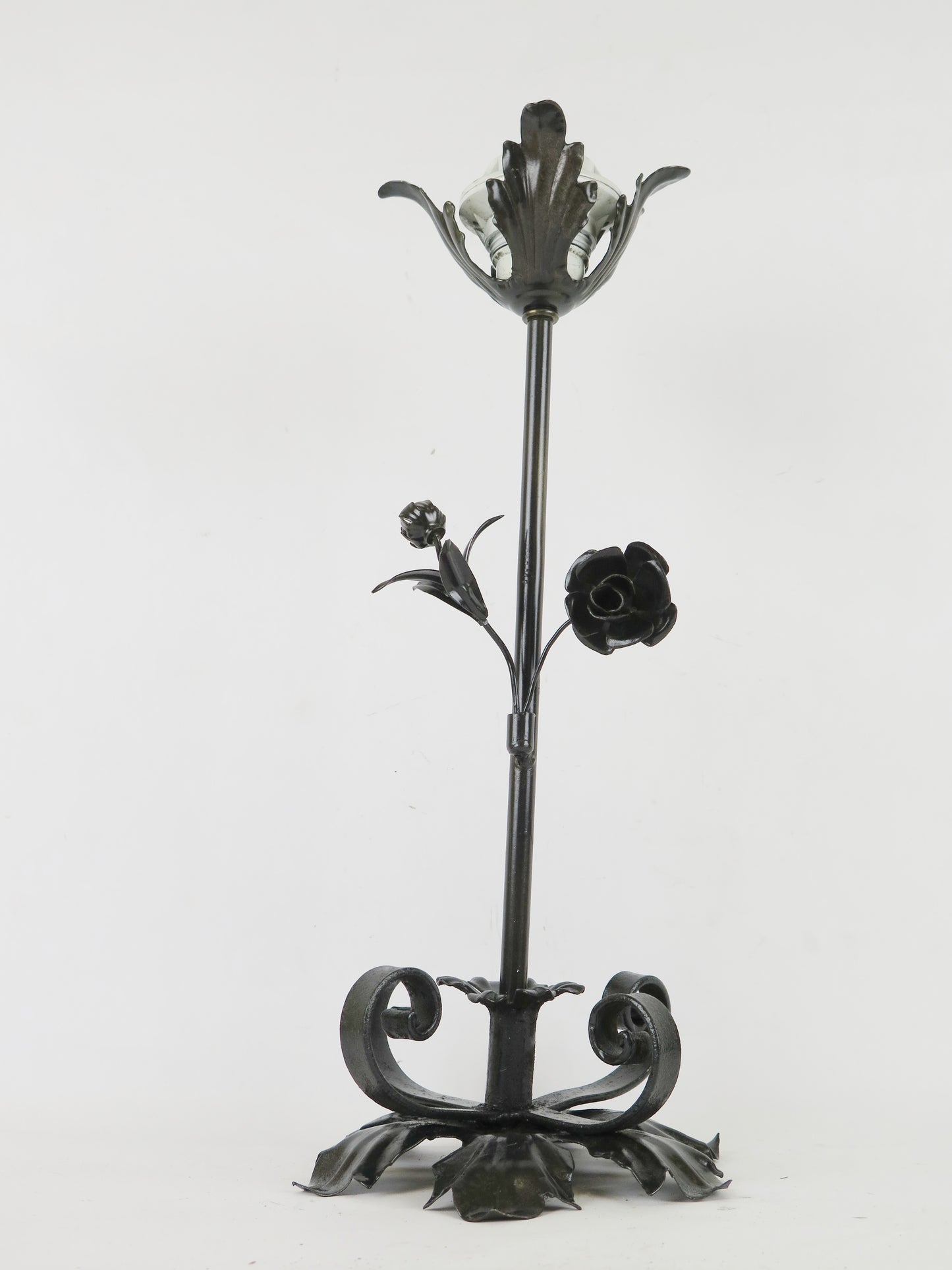 Elagenta lampada da tavolo in ferro battuto decorata con motivi vegetali.