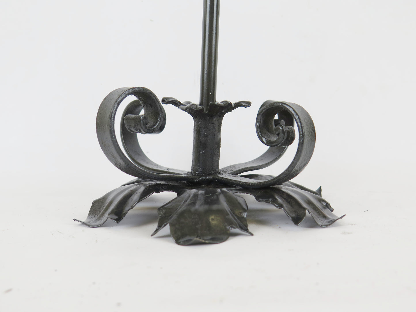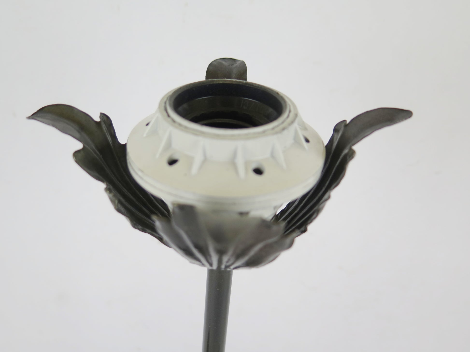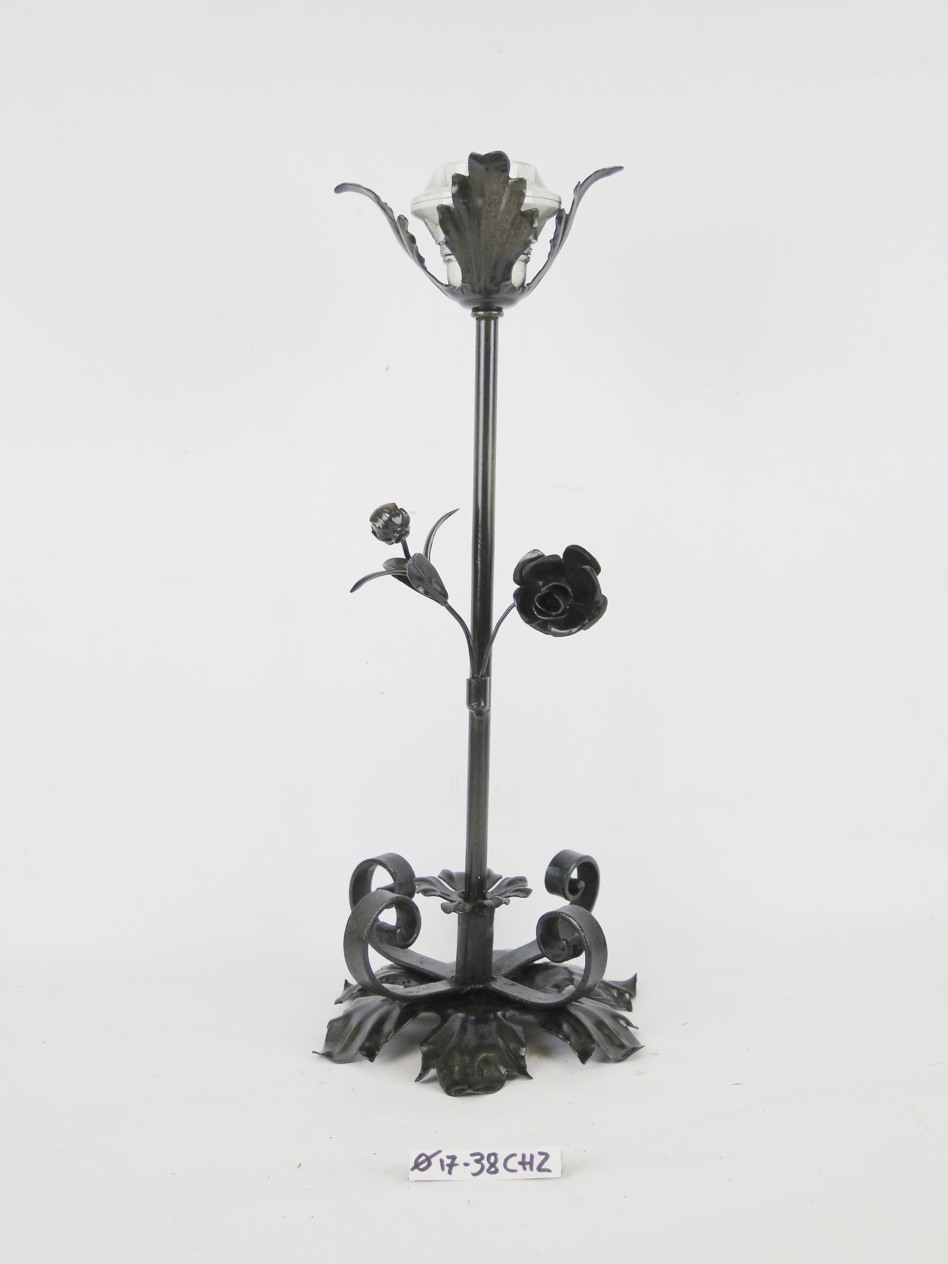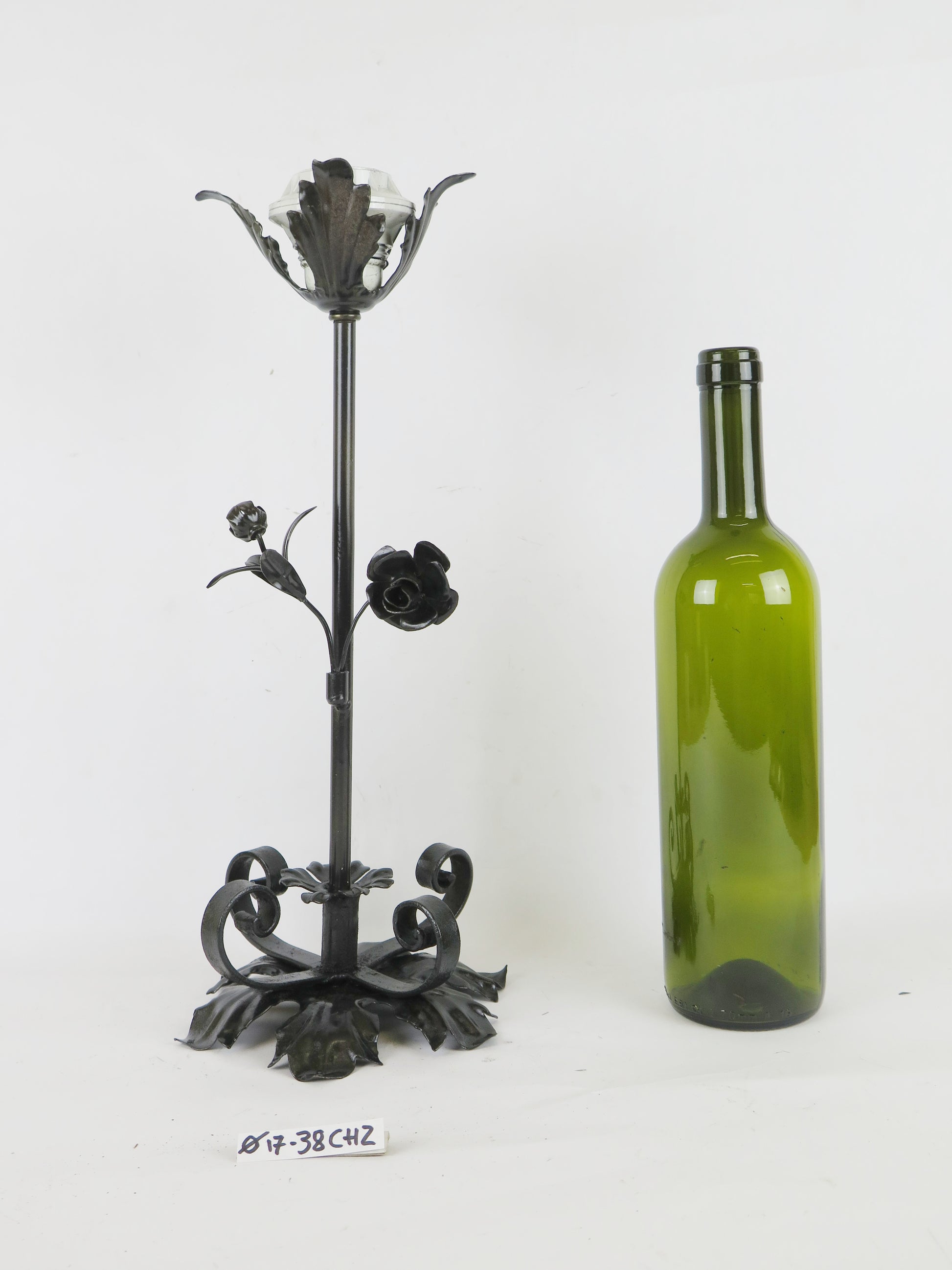 Elagenta lampada da tavolo in ferro battuto decorata con motivi vegetali.