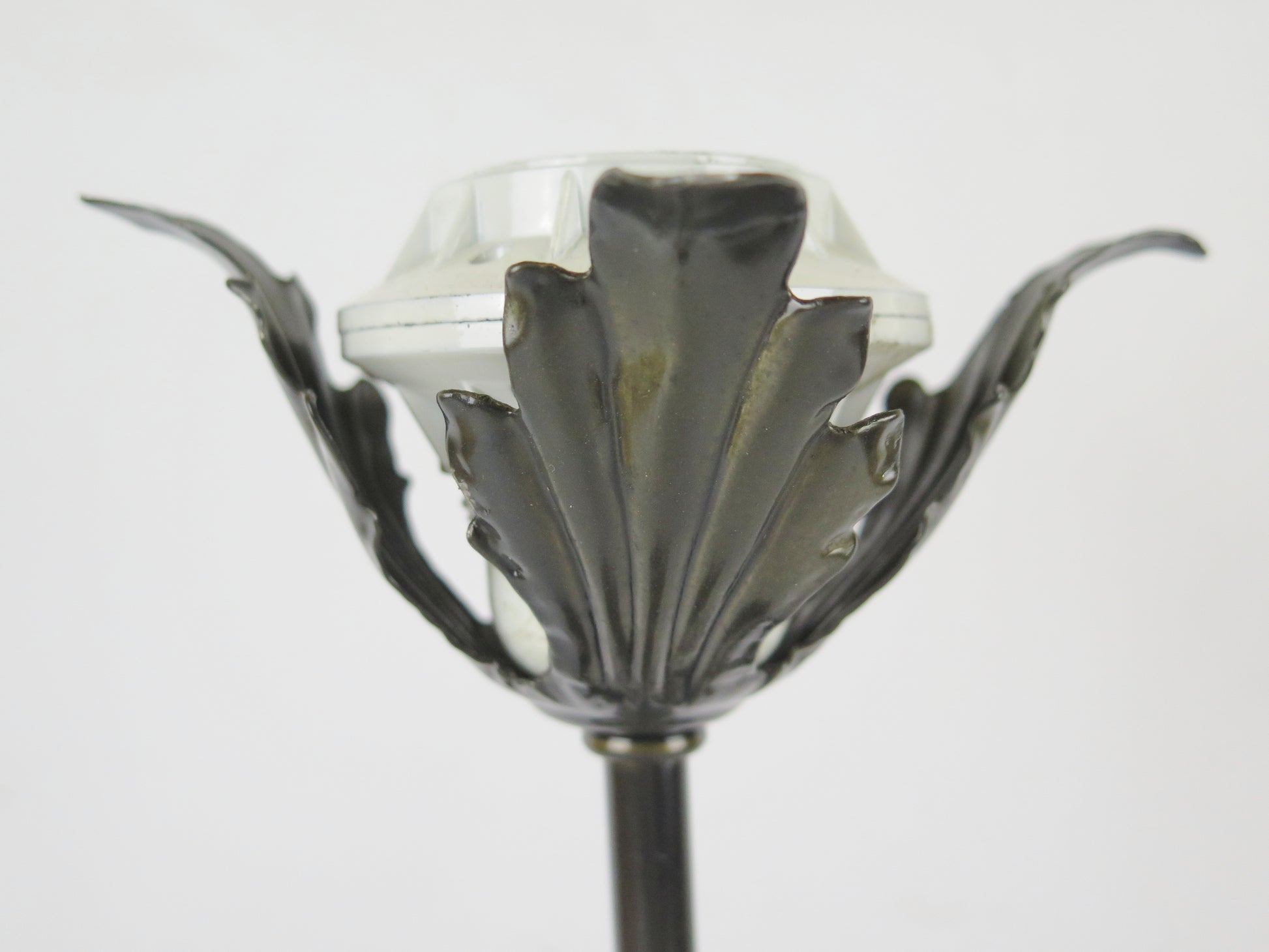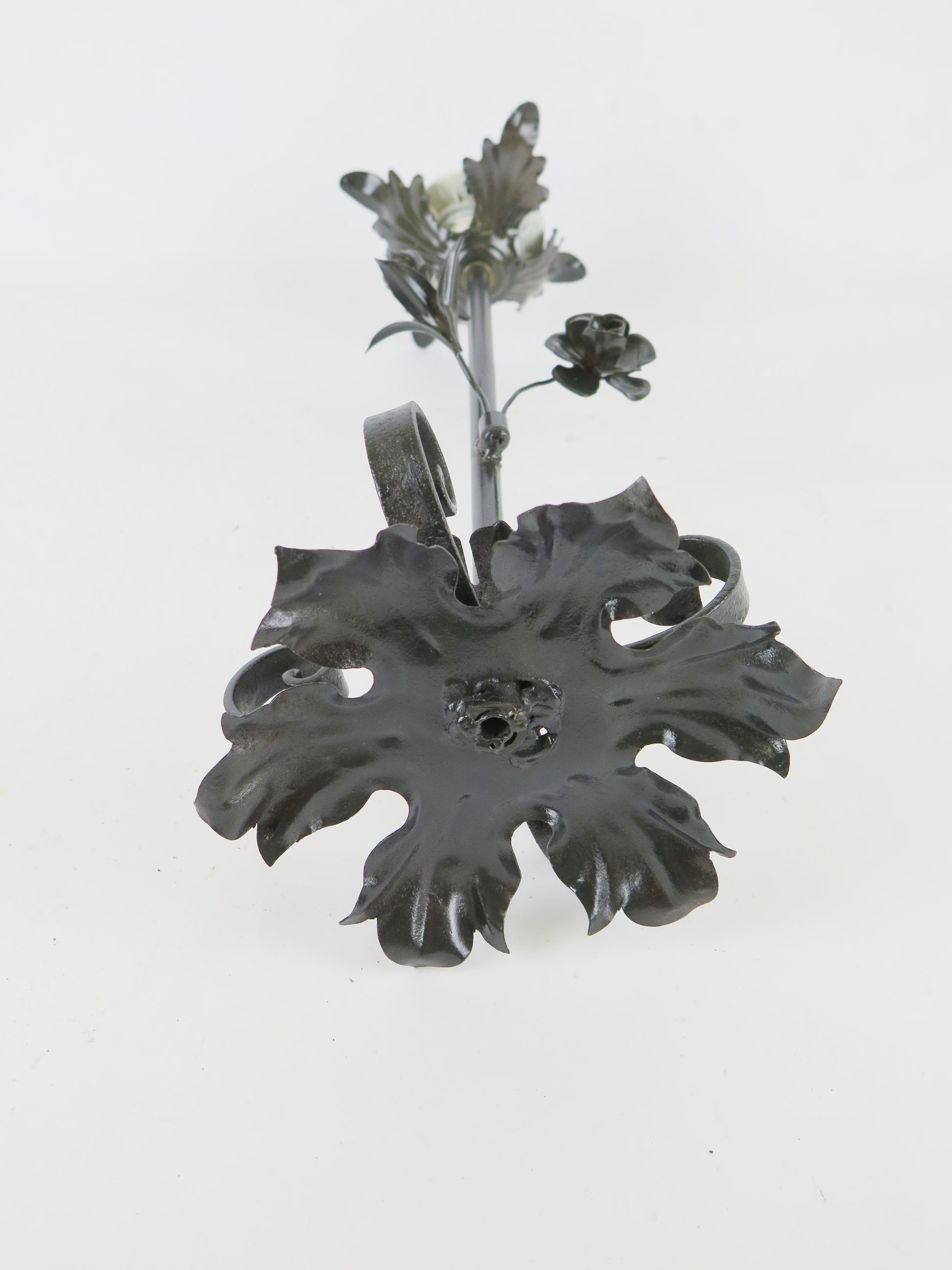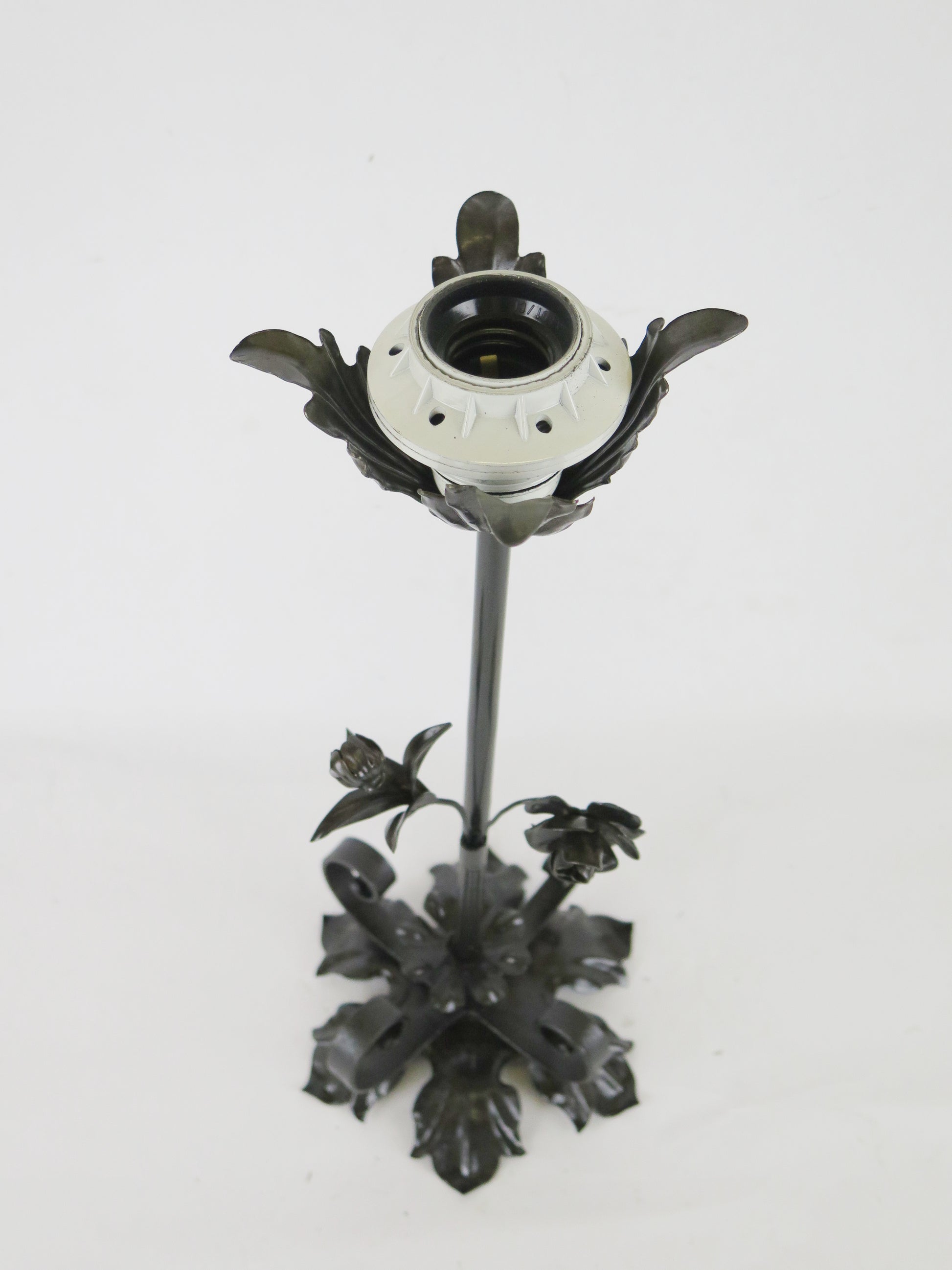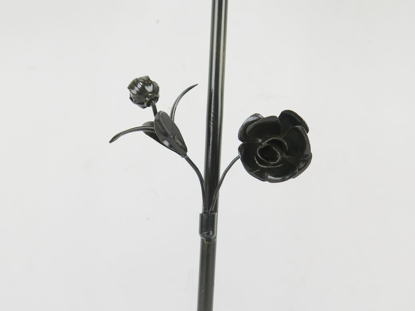 Elagenta lampada da tavolo in ferro battuto decorata con motivi vegetali.