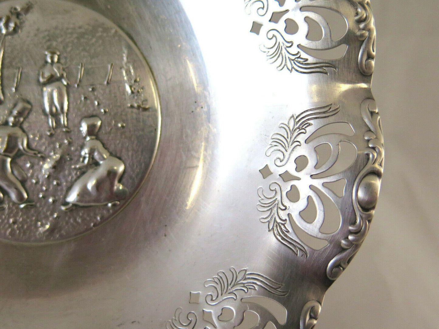 PIATTO CENTROTAVOLA SVUOTATASCHE VINTAGE INIZIO NOVECENTO METALLO ARGENTATO R4