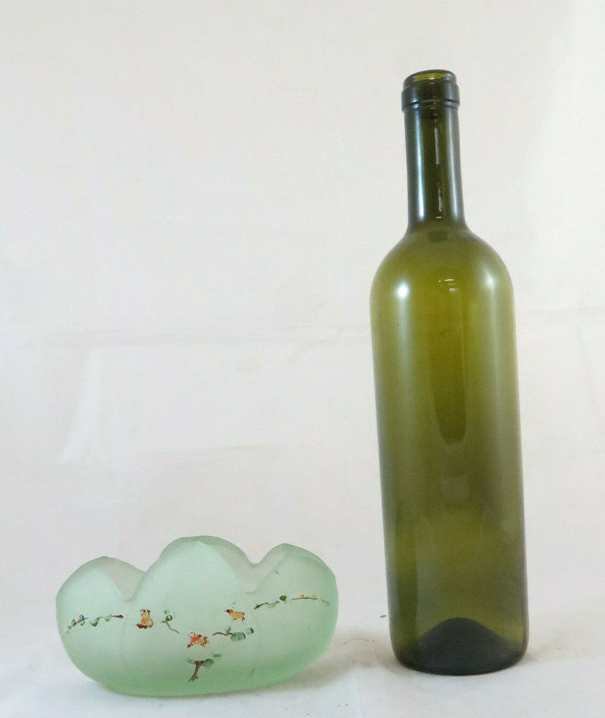 PORTACENERE ANTICO ART NOUVEAU VETRO OPALINO DIPINTO A MANO STILE LIBERTY BM35
