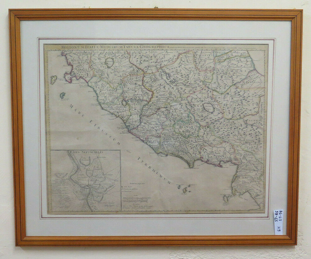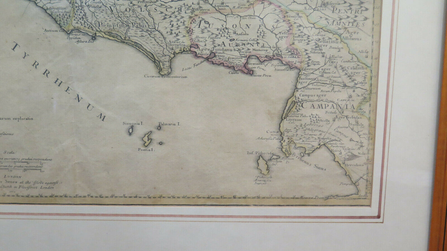 STAMPA ANTICA CARTA GEOGRAFICA CARTINA MAPPA ITALIA CENTRALE 1745 John Senex X9