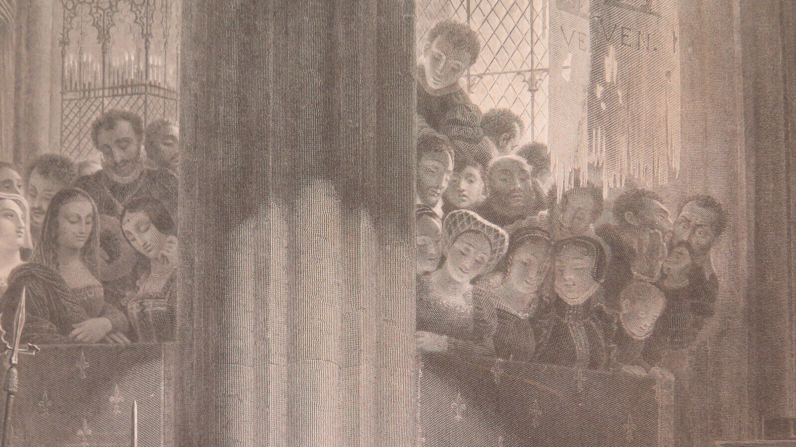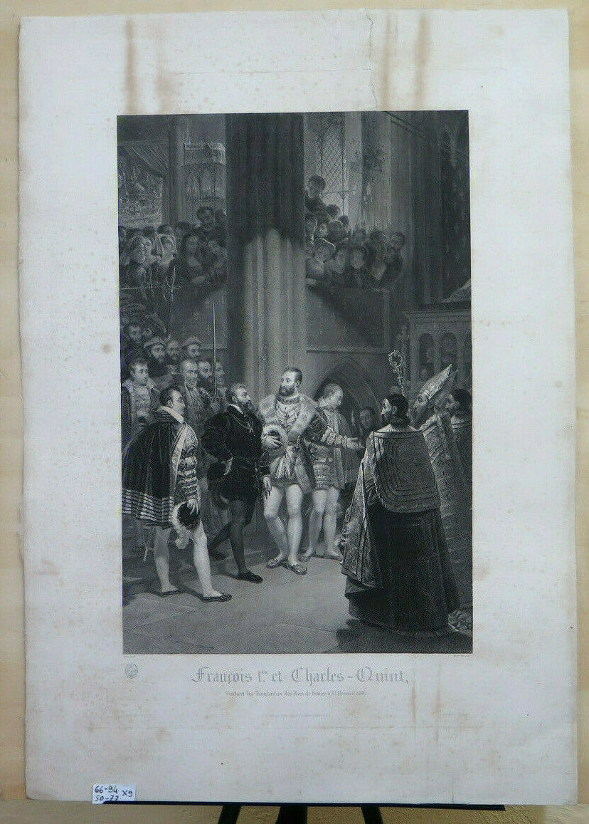 STAMPA ANTICA Francesco I e Carlo V visitano le tombe dei re a Saint DENIS X9