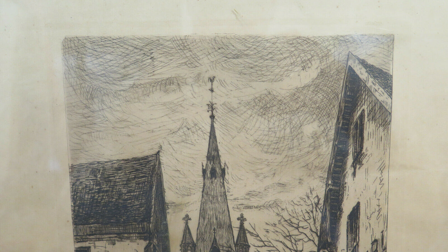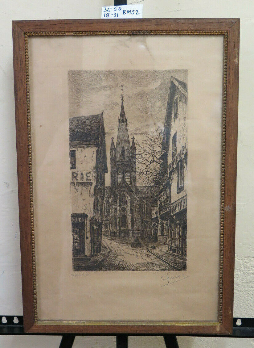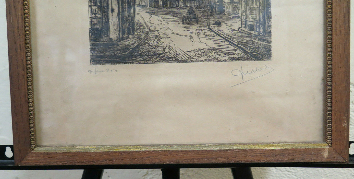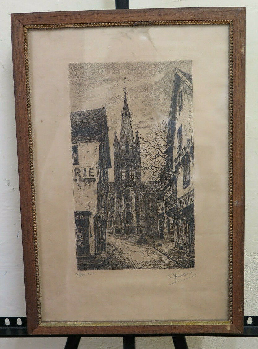 STAMPA ANTICA INCISIONE FIRMATA VEDUTA CITTADINA FRANCIA INIZIO SECOLO BM52