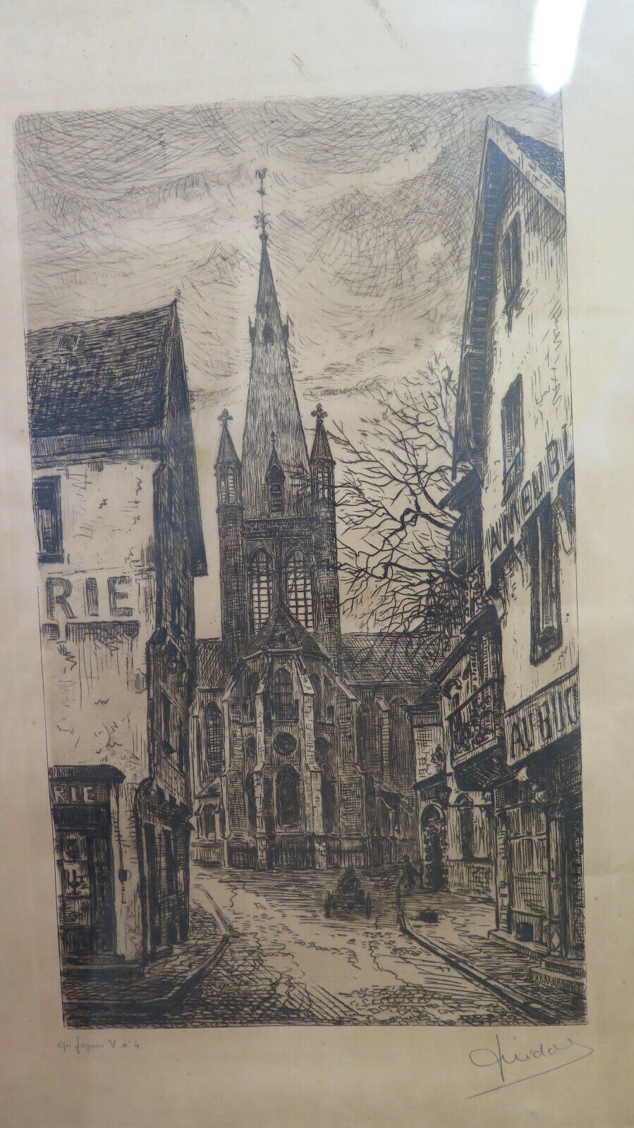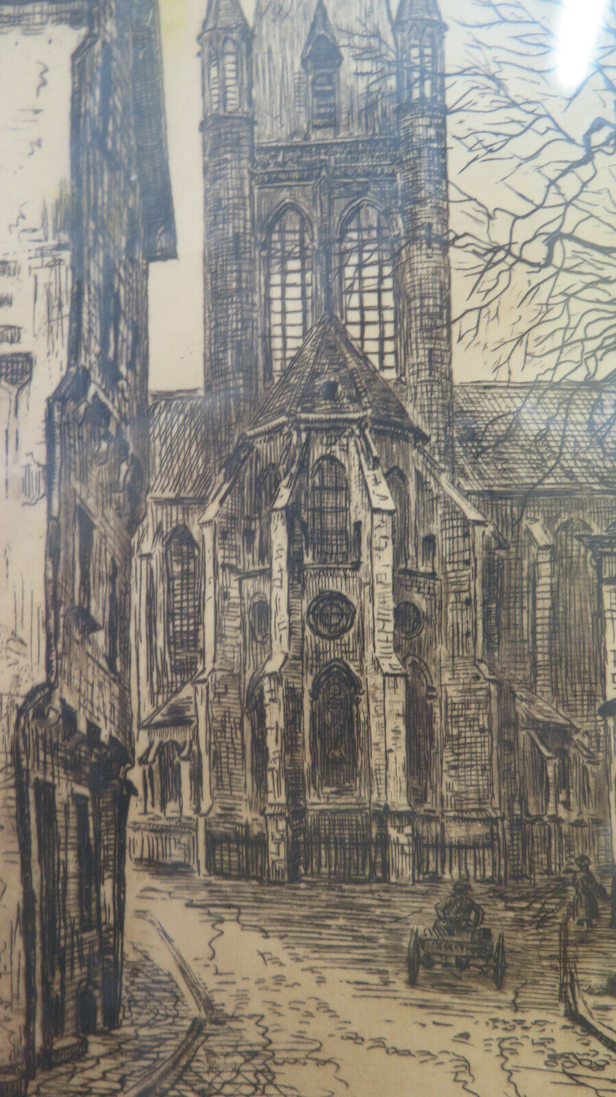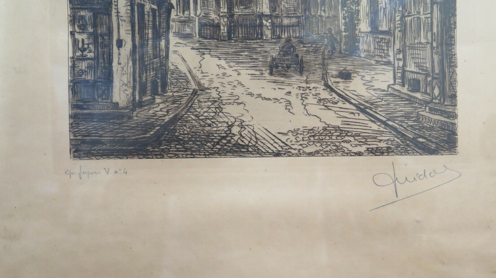 STAMPA ANTICA INCISIONE FIRMATA VEDUTA CITTADINA FRANCIA INIZIO SECOLO BM52