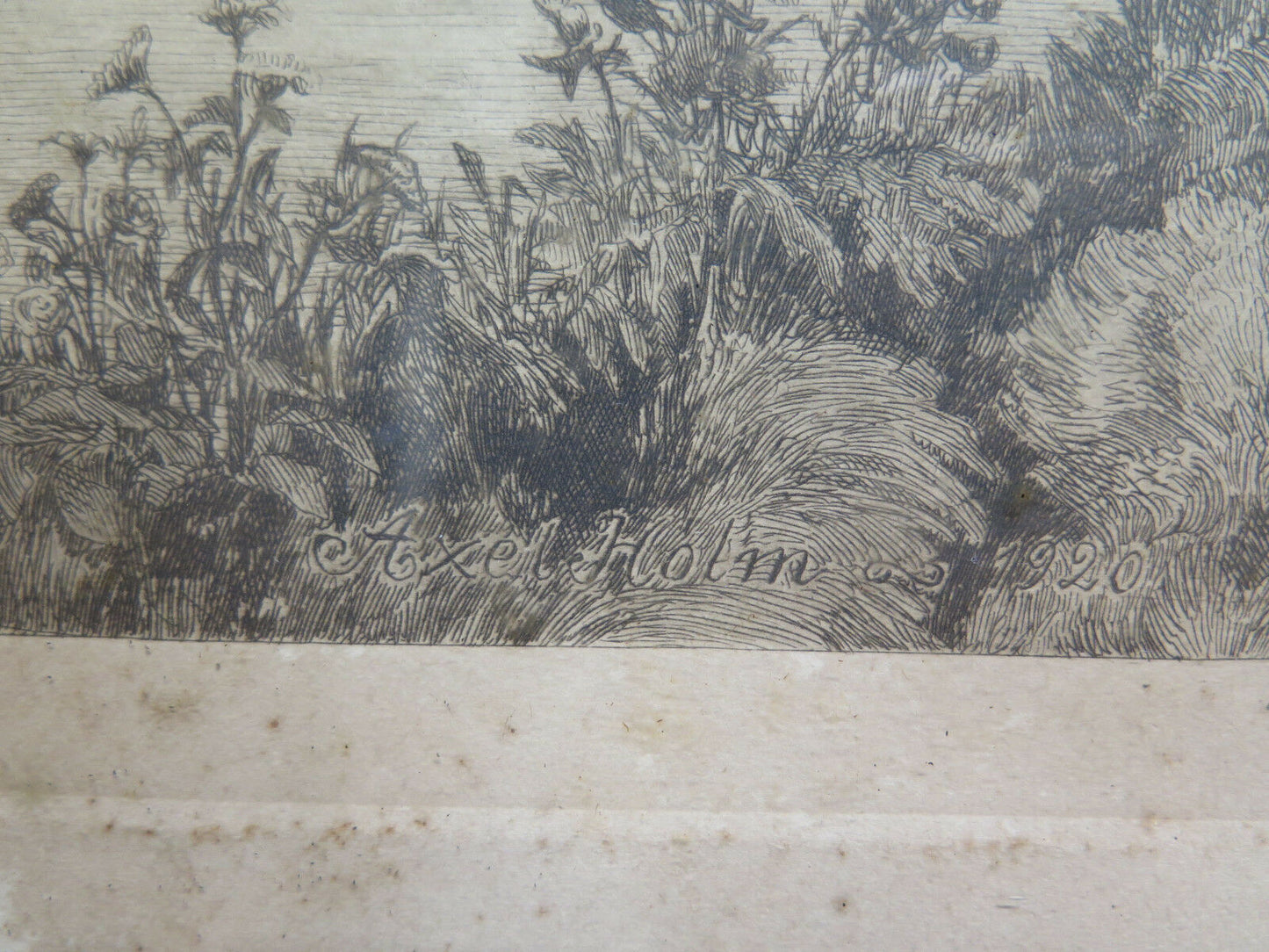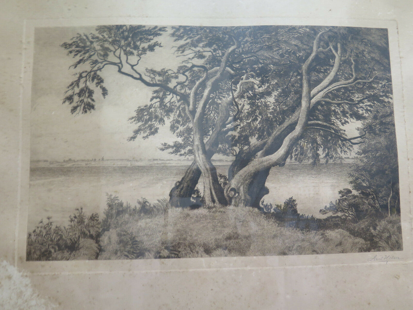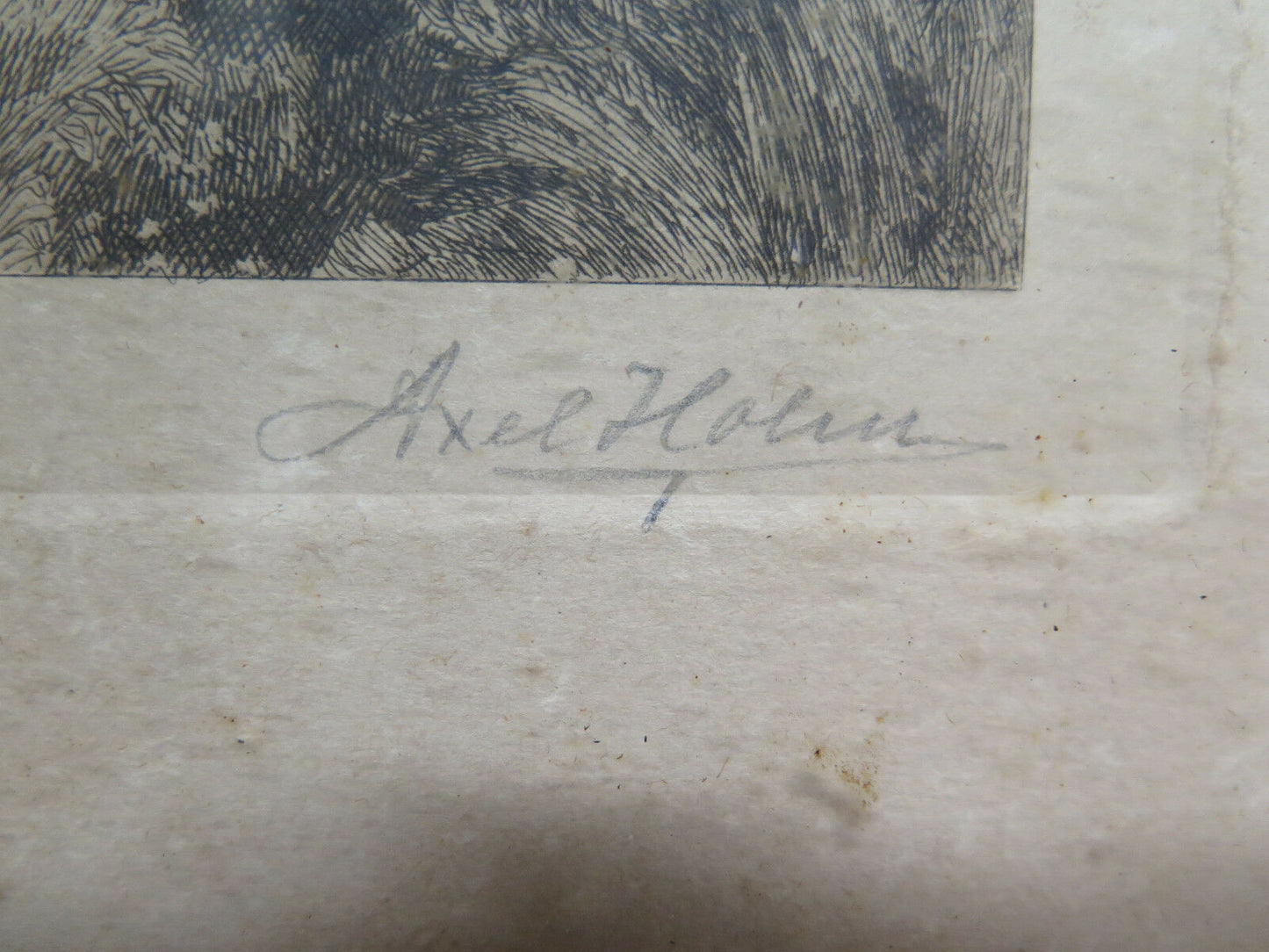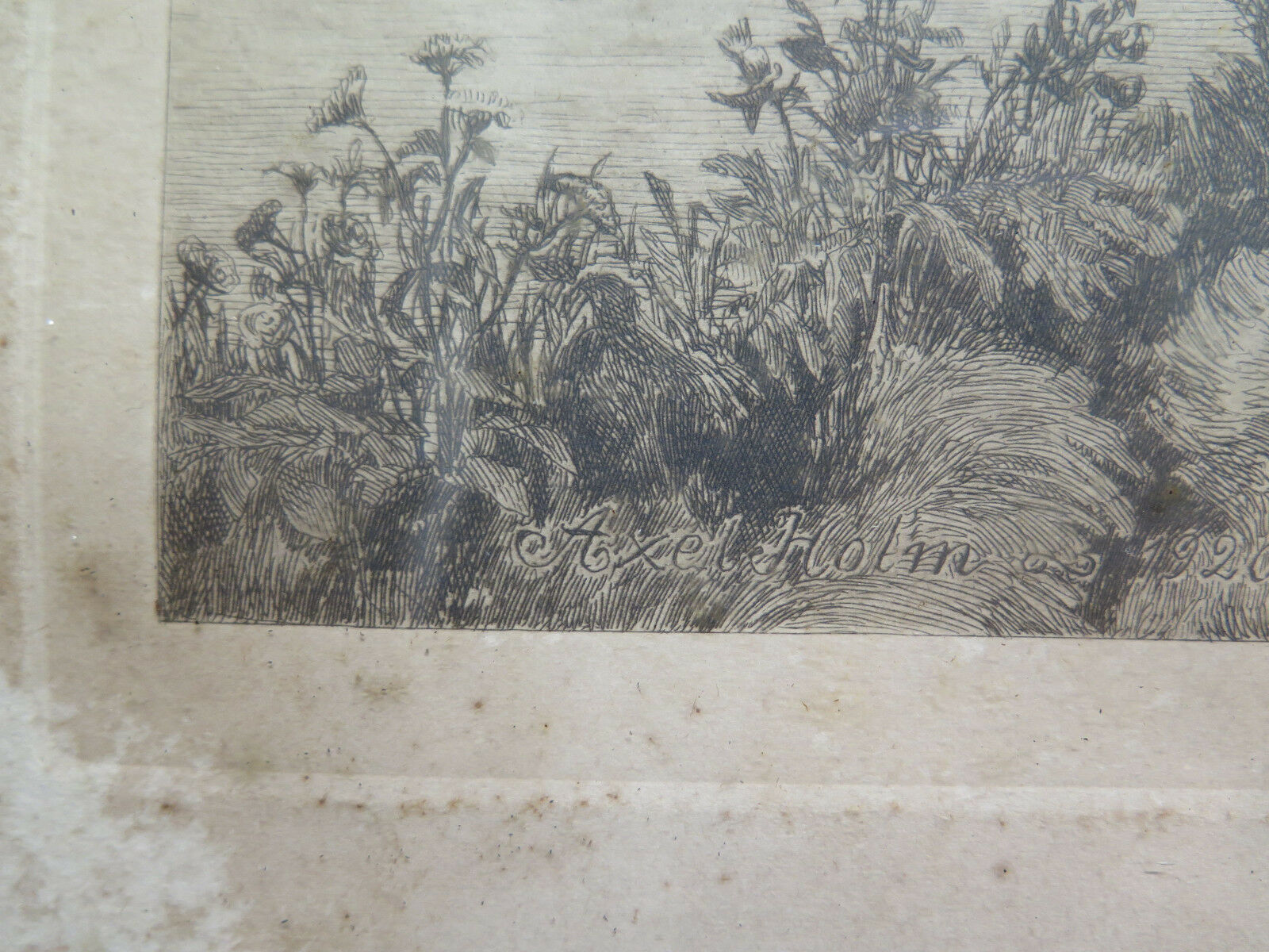 STAMPA ANTICA PAESAGGIO DI CAMPAGNA ALBERI FIRMATA AXEL HOLM VINTAGE PRINT R103