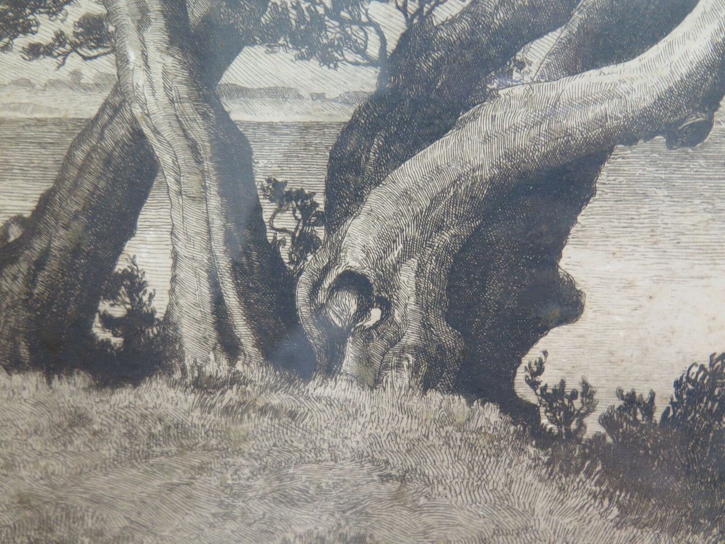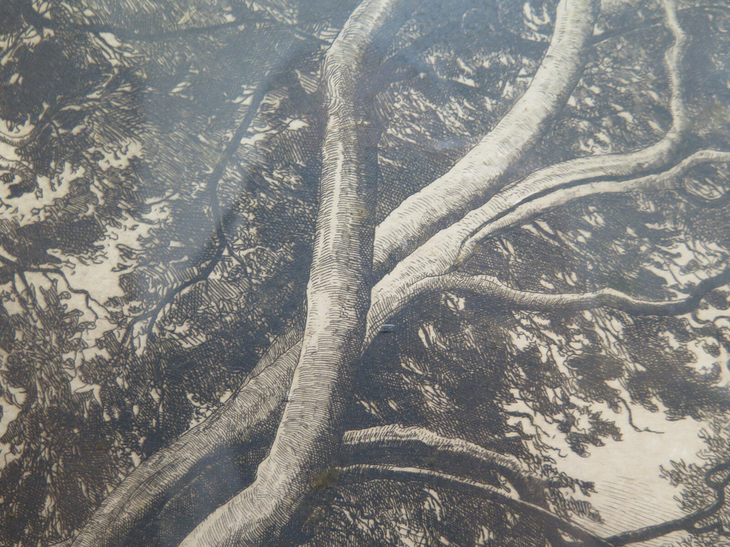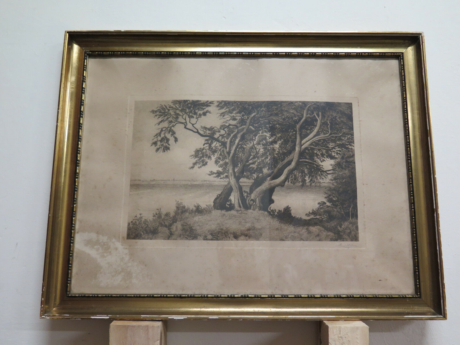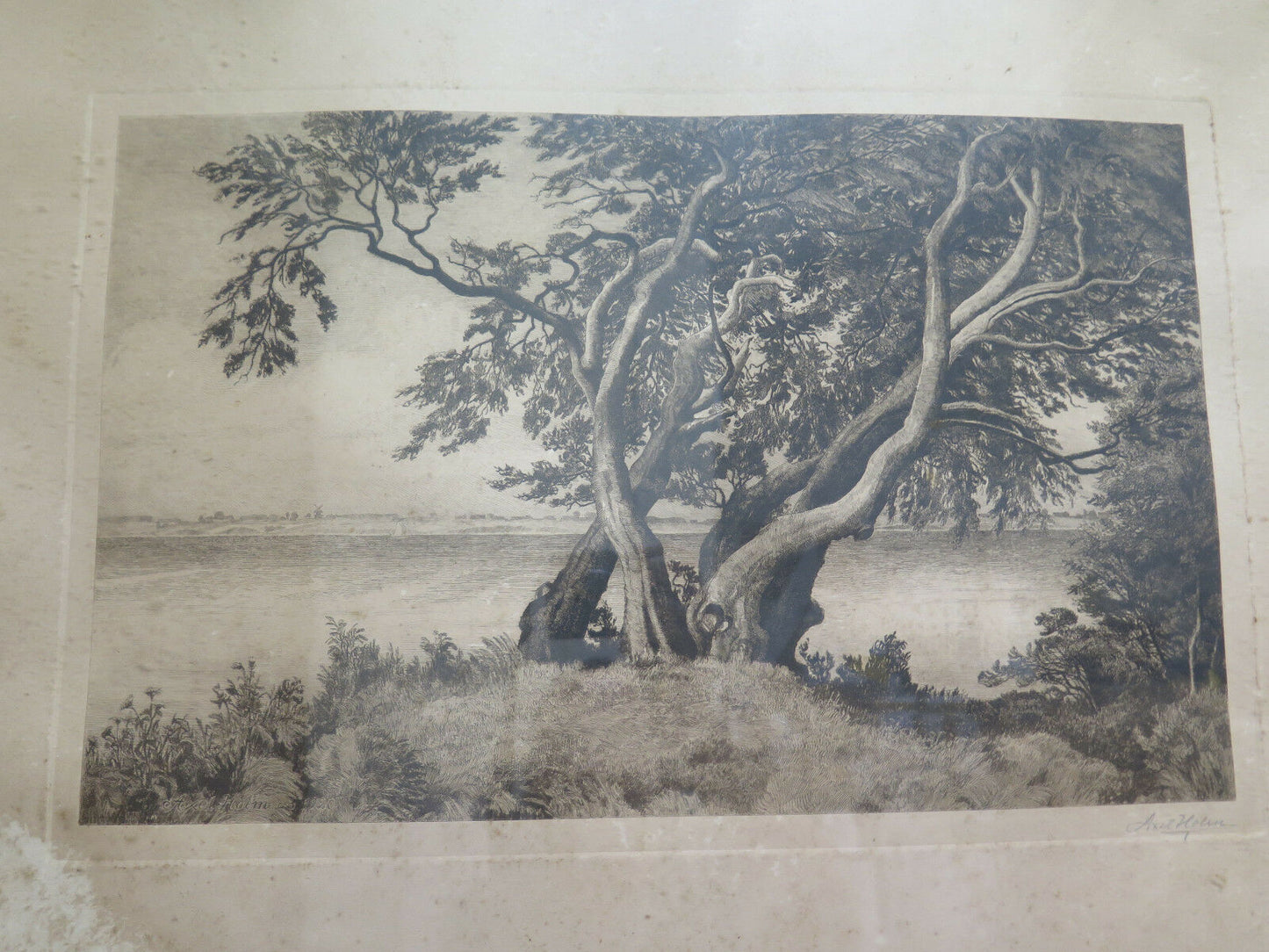 STAMPA ANTICA PAESAGGIO DI CAMPAGNA ALBERI FIRMATA AXEL HOLM VINTAGE PRINT R103