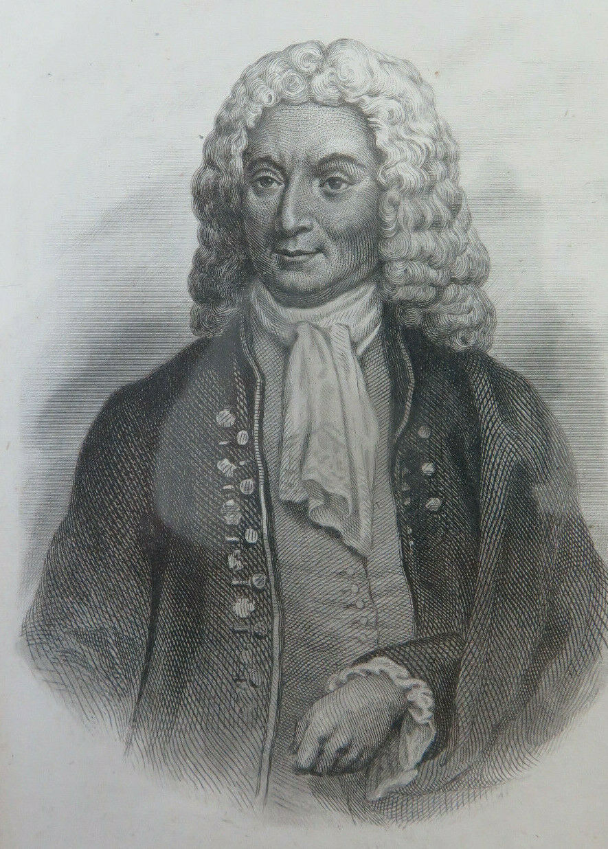 Antica incisione con ritratto di Alain-René Lesage o Le Sage (Sarzeau, 6 maggio 1668 – Boulogne-sur-Mer, 17 novembre 1747), romanziere e commediografo francese.