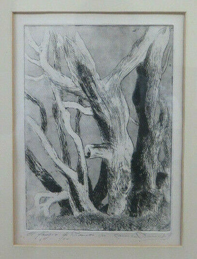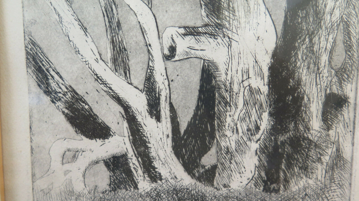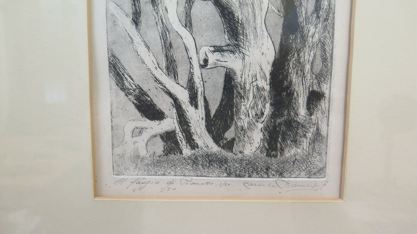 VECCHIA ACQUAFORTE NUMERATA OPERA ARTISTA CARMEN BARUCCHI STAMPA ALBERI BM52