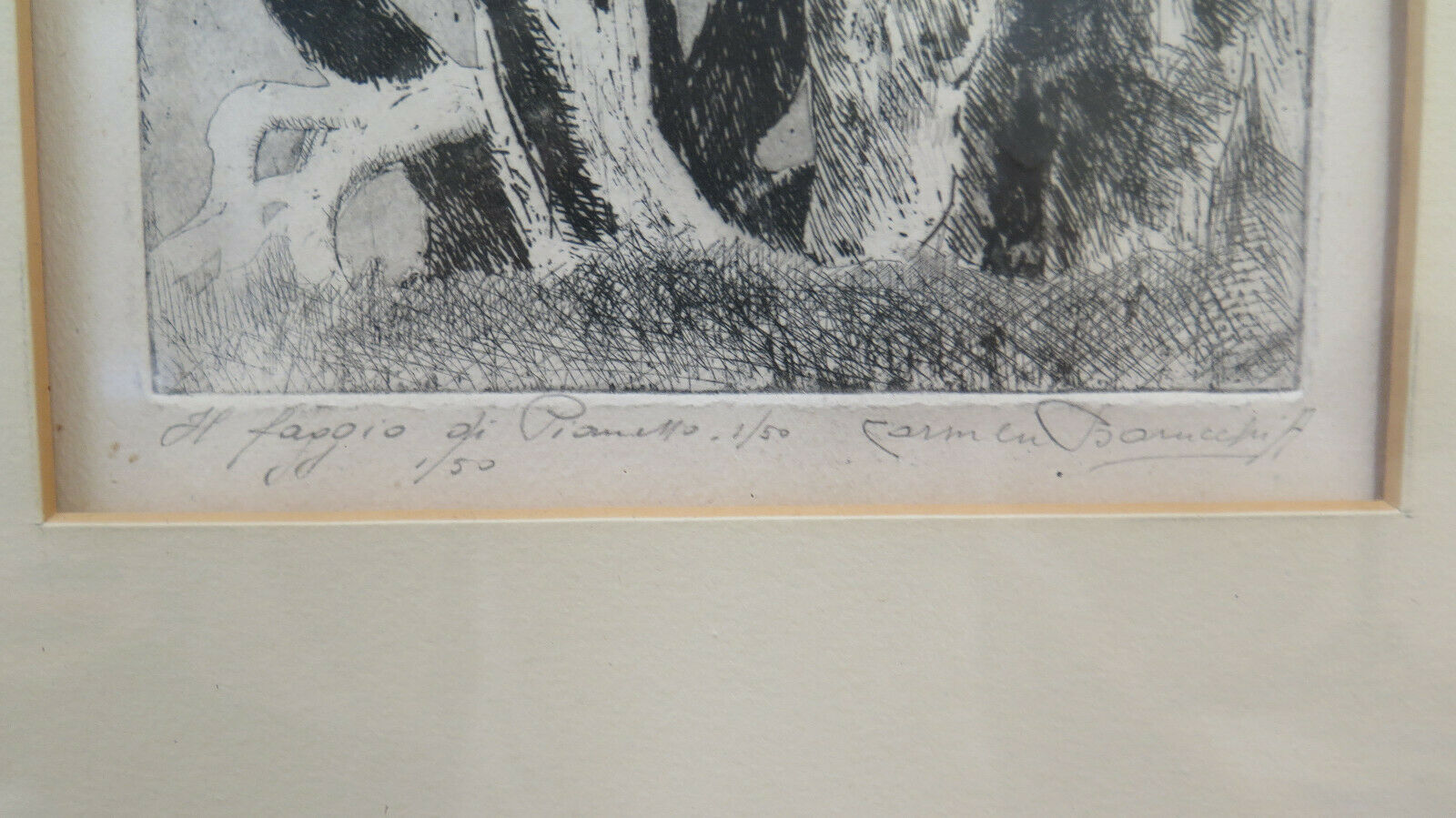Vecchia acquaforte opera della pittrice torinese Carmen Barucchi, numerata 1/50 e firmata.