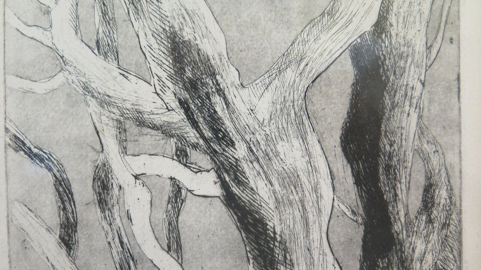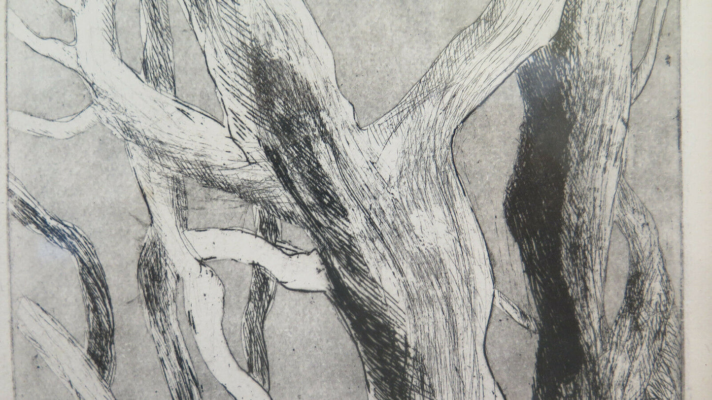 Vintage etching by italian paintress Carmen Barucchi (1903-1973), number 1/50, signed and entitled "Il faggio di Pianetto".